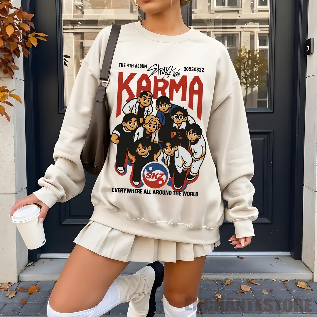 Für alle STAYs da draußen! Dieses Guiran Stray Kids Sweatshirt mit dem ikonischen KARMA-Print ist einfach nur cool. Der Used-Look gibt ihm direkt diesen lässigen Vintage-Charme, als hättest du ihn schon ewig im Schrank. Aus weichem Baumwollmischgewebe und in Unisex-Passform - also bequem für alle, ob Herr oder Dame. Der Rundhals-Ausschnitt und der lockere Schnitt machen ihn zum perfekten Alltags-Begleiter. Ob zu Jeans, Jogginghose oder im Layer-Look - dieses Sweatshirt passt immer! Der Harajuku-inspirierte Streetstyle-Vibe ist genau richtig für Konzerte, Fan-Events oder einfach für dich zu Hause. Und das Beste: Der Stray Kids Bezug ist subtil genug, dass nicht jeder sofort erkennt, dass es Fan-Merch ist - aber echte STAYs wissen natürlich Bescheid! So zeigst du deine Liebe zur Band, ohne übertrieben zu wirken. Perfekt für kühlere Tage, zum Zocken, Chillen oder Unterwegs. Einfach anziehen und wohlfühlen! Das Sweatshirt wird schnell dein neues Lieblingsteil - garantiert! Und weil's so bequem ist, willst du es kaum noch ausziehen. Egal ob du gerade neue Stray Kids Tracks hörst oder einfach nur relaxed durch die Stadt läufst - mit diesem Sweatshirt fühlst du dich einfach gut!
