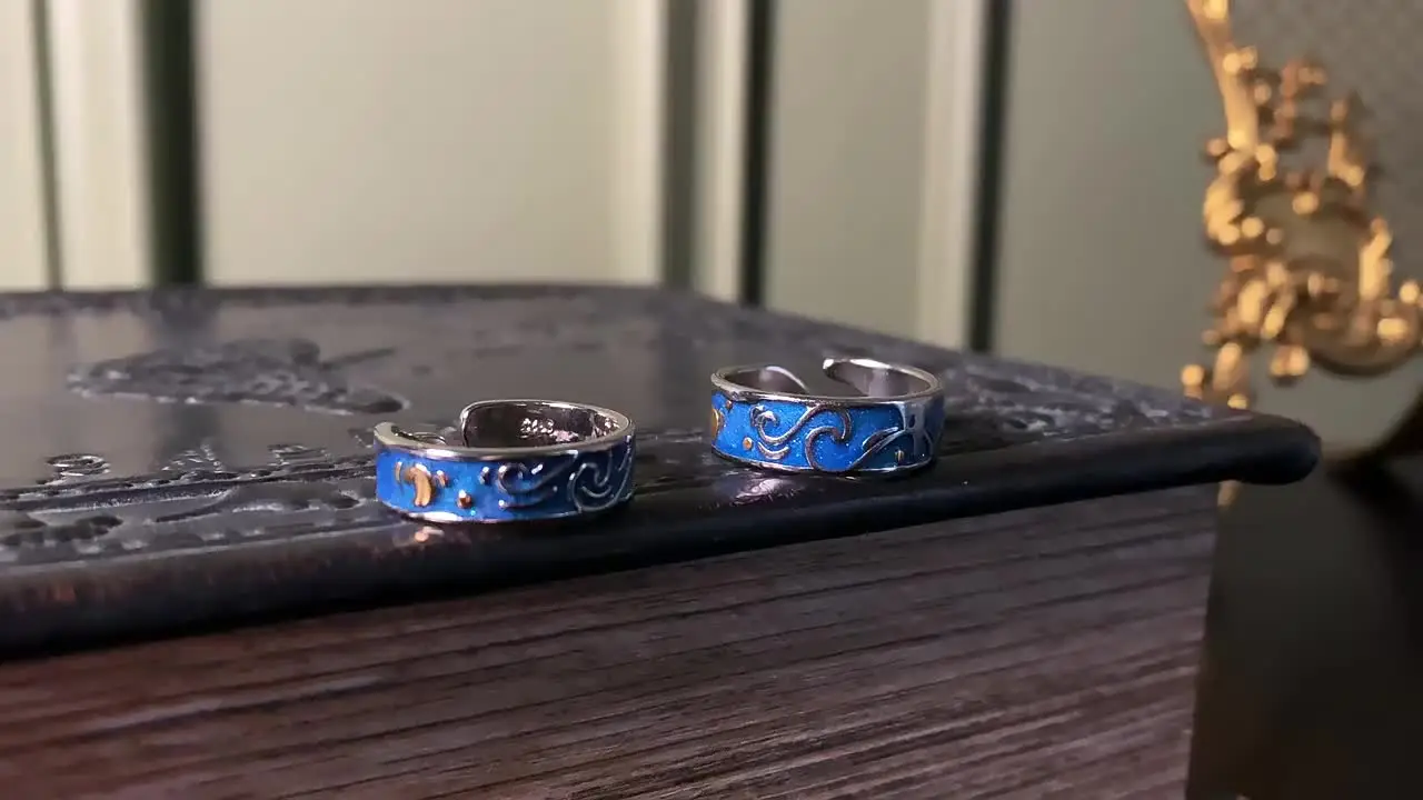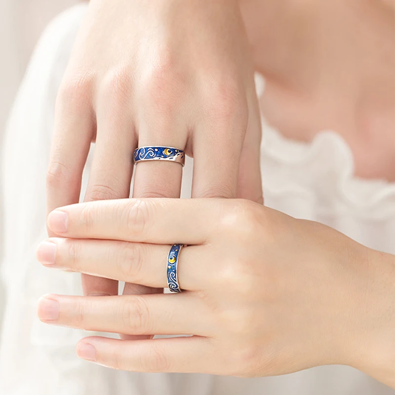 Sxett Van Gogh Sternennacht Ring - Offener Fingerring Mit Blauer Emaille (verstellbar)