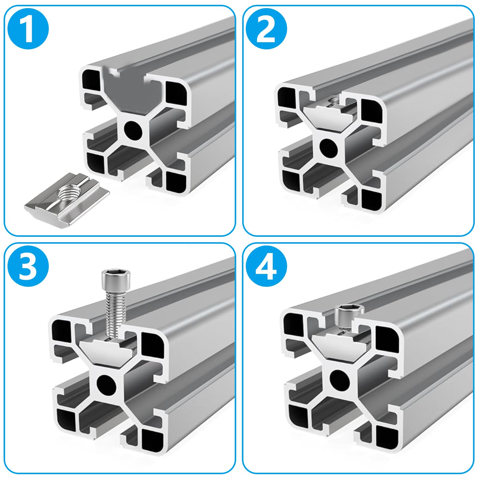 Boah, dieses 50er-Set Nutensteine ist ja mal der Hammer für alle, die mit Aluminiumprofilen arbeiten! Egal ob für 3D-Drucker, CNC-Maschinen oder Werkstatteinrichtungen - mit diesen M8 Muttern bist du bestens ausgestattet.\\n\\nIm Set: 25x M8 T-Muttern (16x16mm) + 25x M8x16mm Innensechskantschrauben. Alles aus robustem Kohlenstoffstahl - hochfest und rostfrei! Perfekt für Aluminiumprofile der 30er Serie mit 8mm Nuten (Typ B).\\n\\nDie Muttern sind präzise geschnitten und poliert - gleiten super in die Profilnuten und lassen sich leicht positionieren. Das Gewinde ist sauber geschnitten - die Schrauben greifen perfekt und sitzen bombenfest!\\n\\nEinfach die T-Mutter in die Nut des Profils schieben, Bauteil ansetzen und Schraube festziehen - fertig! Nachträgliches Einschieben geht nicht, also vor der Montage überlegen!\\n\\nEinsatzgebiete: Industrie, Automation, Holzverarbeitung, Roboter-Projekte, 3D-Druck, Lasercutter - basically überall, wo präzise Verbindungen gebraucht werden!\\n\\nDas Material ist langlebig und korrosionsbeständig - hält auch in anspruchsvoller Umgebung. Und der Preis für 50 Teile ist absolut fair! Einmal kaufen und du hast lange was davon. Perfekt für Hobby und Profession - einfach unverzichtbar für alle Profil-Bauer!