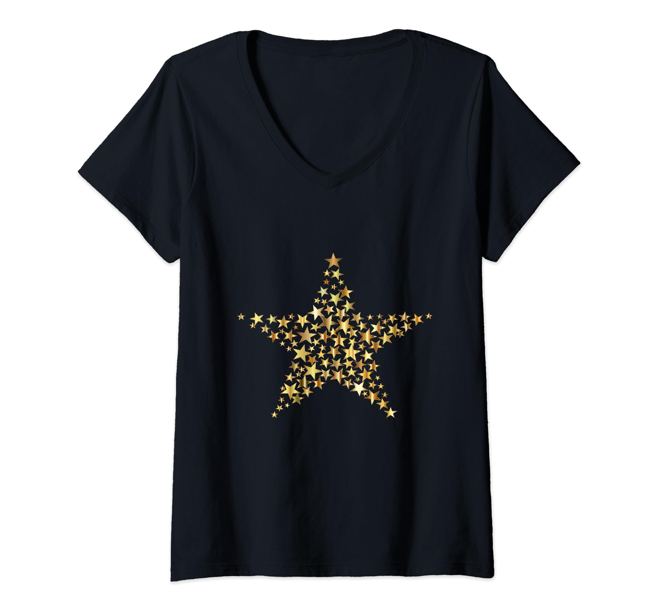 • Damen T-Shirt Mit V-Ausschnitt & Sternenprint - Lockeres Langarm Top