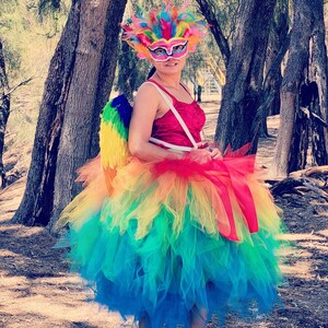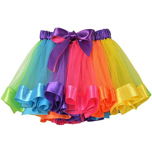 So süß! Dieser Regenbogen-Tüllrock lässt Mädchenherzen höher schlagen. In knalligen Regenbogenfarben - damit ist deine Kleine der Star auf jeder Party!\\n\\nGrößen: M für 2-4 Jahre (Taille 24-42 cm, Länge 25 cm), L für 5-8 Jahre (Taille 26-47 cm, Länge 28 cm). Der elastische Bund macht das Anziehen super einfach.\\n\\nMaterial: Hochwertiger Polyester und leichter Tüll - weich auf der Haut und flauschig im Look. Ohne störende Nähte in der Mitte - sieht noch voller aus!\\n\\nPerfekt für Geburtstage, Ballettunterricht, Theateraufführungen oder einfach zum Verkleiden. Mit dem Band an der Taille kann man eine hübsche Schleife binden.\\n\\nTipp: Am besten mit Leggings oder langen Hosen tragen. Handwäsche empfohlen. Einfach anziehen und strahlen wie eine Prinzessin!