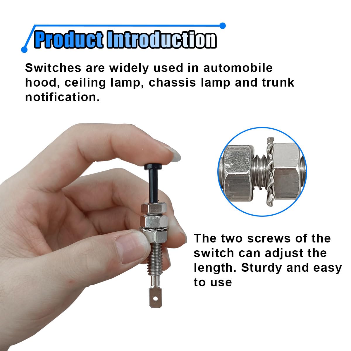 Für alle Auto-Tüftler und Sicherheitsbewusste! Diese 12V Türkontaktschalter sind super praktisch für dein Auto oder LKW. Mit den wasserdichten Schaltern machst du deine Innenraumbeleuchtung oder Motorwarnung sicherer - die gehen nicht so schnell kaputt. Einfach zu montieren, egal ob du Profi oder Hobby-Schrauber bist. Die Schalter haben ne Länge von 70 mm, die Schrauben sind 35 mm lang - passen in die meisten Fahrzeuge. Aus robustem Metall, halten was aus! Perfekt wenn du Wert auf Fahrzeugsicherheit legst - damit kriegst du mit, wenn ne Tür nicht richtig schließt oder die Motorhaube offen ist. Die verstellbaren Pins machen die Installation zum Kinderspiel. Gib deinem Fahrzeug das Extra an Sicherheit und Funktionalität - mit diesen universalen Pin-Schaltern. Lieferung wahlweise mit 2 oder 4 Stück - je nachdem wie viele du brauchst. Kleiner Hinweis: Wie immer kann's minimale Abweichungen bei den Maßen geben, aber das stört bei der Montage nicht.