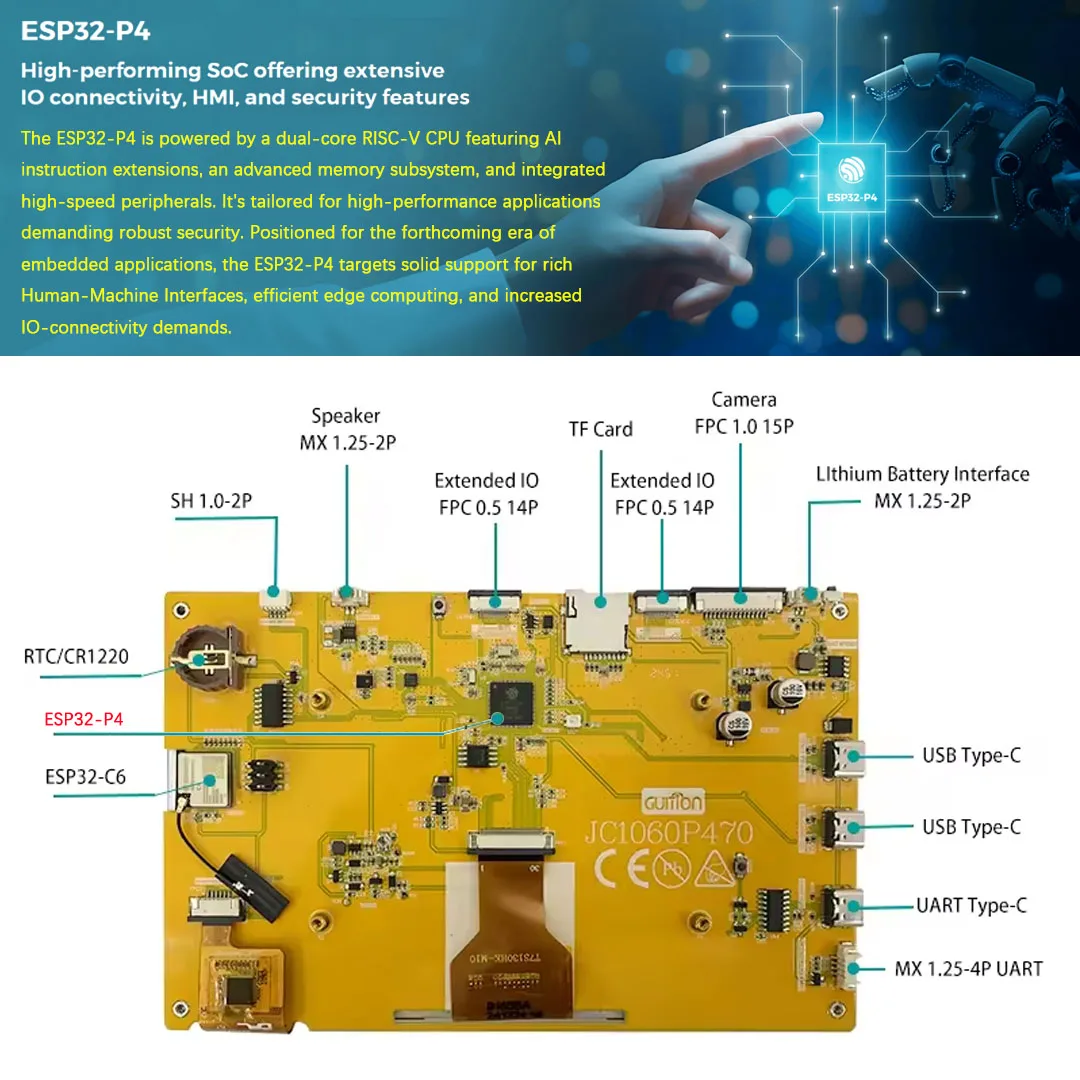 Programmieren war noch nie so visuell! Dieses TOBEOME ESP32 P4 Board mit 7 Zoll Display ist ein echter Game-Changer. Die 1024x600 IPS Auflösung zeigt jedes Detail kristallklar. Mit Touchscreen, ESP32-C6 Prozessor, Kamera- und Audio-Interface hast du alle Möglichkeiten. Perfekt für IoT-Projekte, Smart Home Displays oder eigene GUI-Entwicklungen. Einfach anschließen und losprogrammieren - die Hardware ist vorbereitet! Ob für Profis oder Hobby-Entwickler - dieses Board macht Spaß und eröffnet neue Dimensionen. Dein nächstes Projekt wartet!