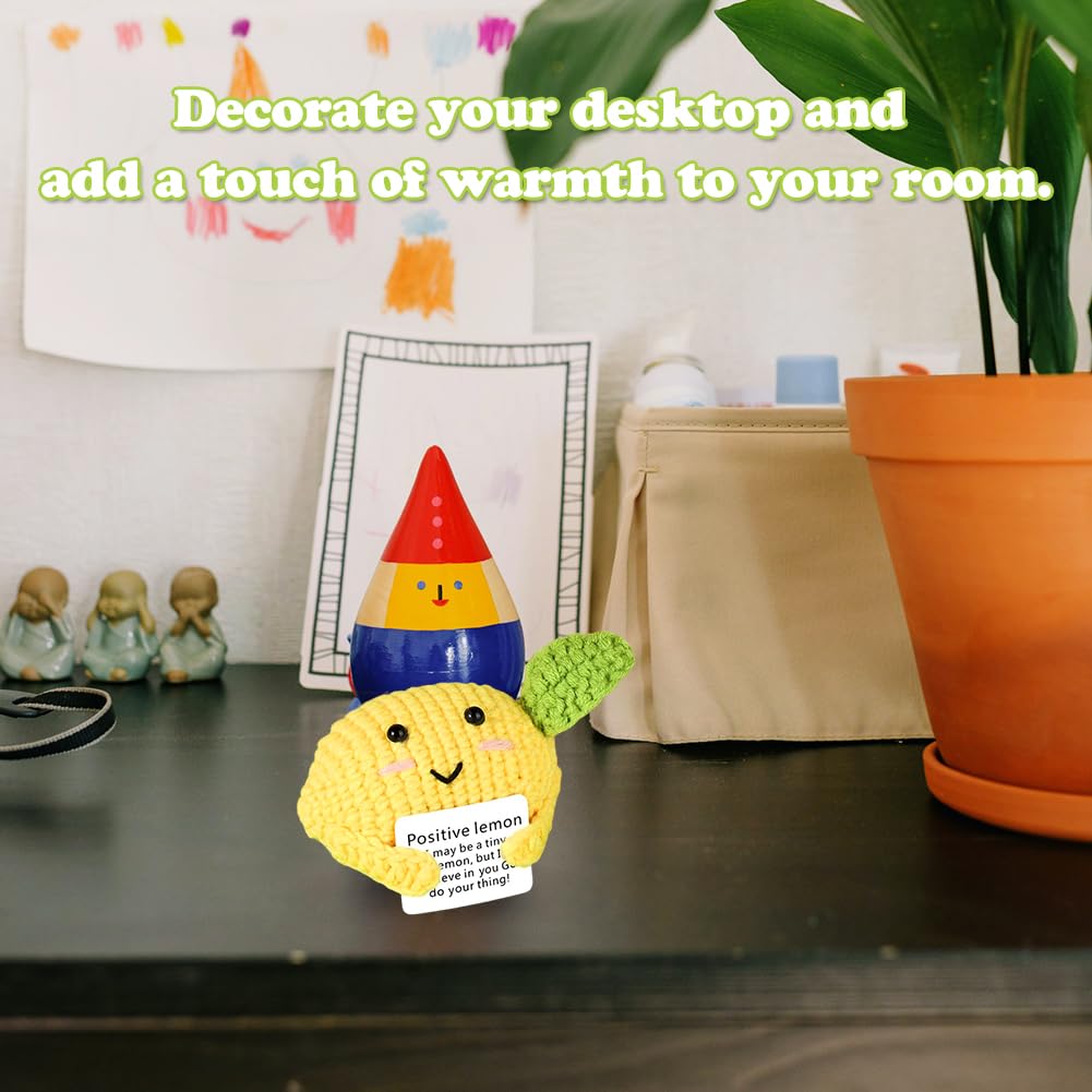 So süß kann Motivation sein! Diese handgestrickte Zitrone aus weicher Baumwolle bringt gute Laune in jedes Zuhause. Mit 12x5,5x5 cm ist sie der perfekte Schreibtisch-Begleiter oder Deko-Hingucker. Jede Zitrone ist ein Unikat, liebevoll von Hand gefertigt. Mit einer ermutigenden Karte - ideal um jemandem eine Freude zu machen. Symbolisiert Sonnenschein und Vitalität, genau das Richtige für trübe Tage. Ein herzerwärmendes Geschenk für Liebste, Freunde oder einfach für sich selbst. Einfach niedlich und garantiert lächeln!