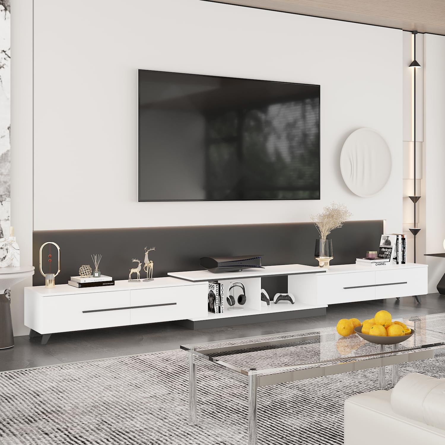 PREMTURE TV Schrank Weiß - Verstellbares Lowboard Mit 3 Schubladen 270cm