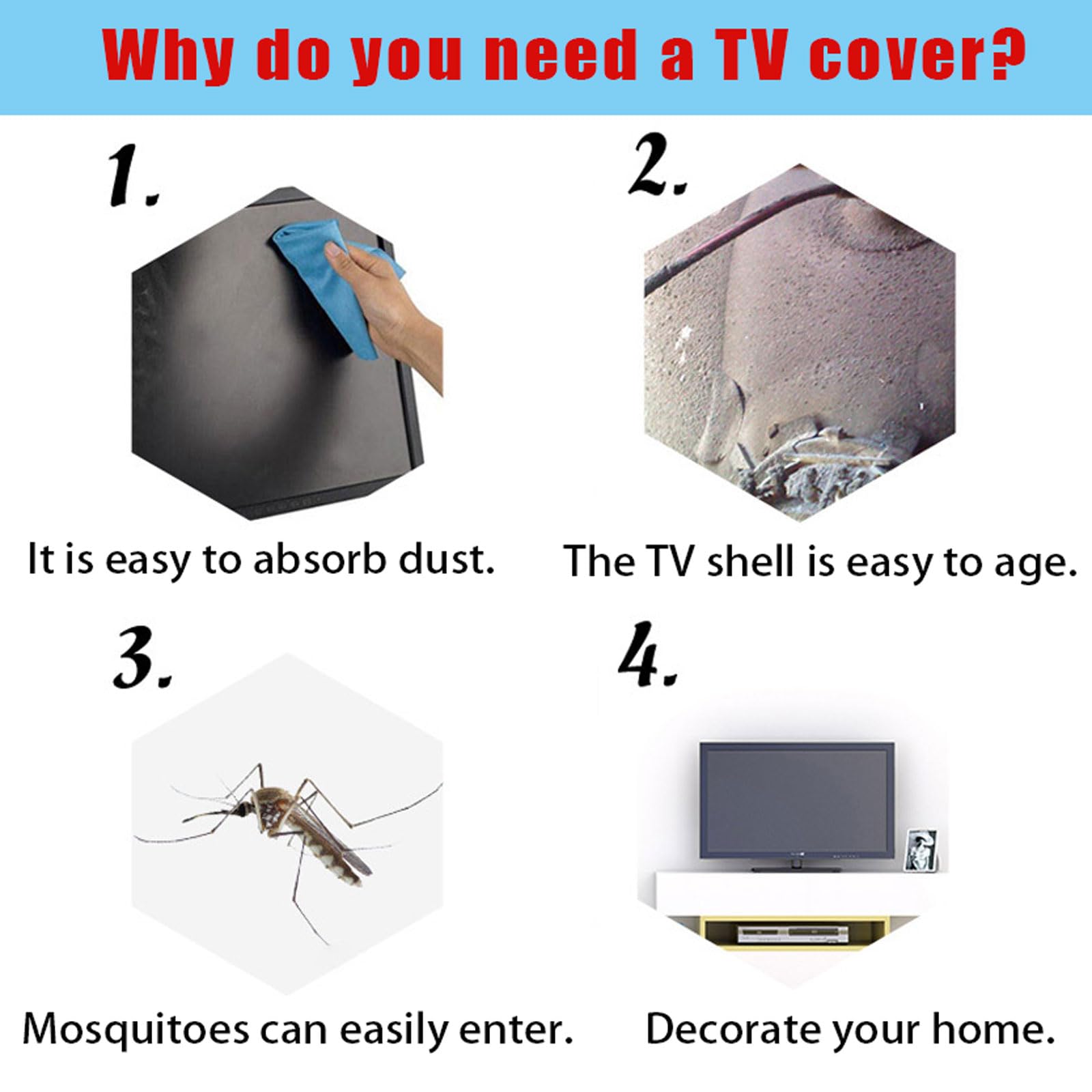 Hey, dein teurer Fernseher verdient doch den besten Schutz, oder? Diese elastische Staubschutzhülle hält lästigen Staub von deinem Bildschirm fern - und sieht dabei auch noch gut aus! \\n\\nDas Material ist weich, atmungsaktiv und verformt sich nicht. Die Hülle liegt perfekt an und verblasst nicht, egal wie lange du sie benutzt. Und das 360-Grad-Design schützt von allen Seiten! \\n\\nEs gibt sie in verschiedenen Größen für Fernseher von 30 bis 85 Zoll - da ist für jedes Modell was dabei! Einfach über den Fernseher ziehen und schon ist er vor Staub, Kratzern und Sonneneinstrahlung geschützt. \\n\\nPerfekt fürs Wohnzimmer, aber auch für Geschäfte oder Messen. Wenn Gäste kommen oder du länger nicht da bist - einfach die Hülle drüber und dein TV bleibt wie neu! Einfach bestellen und deine Technik investition schützen.