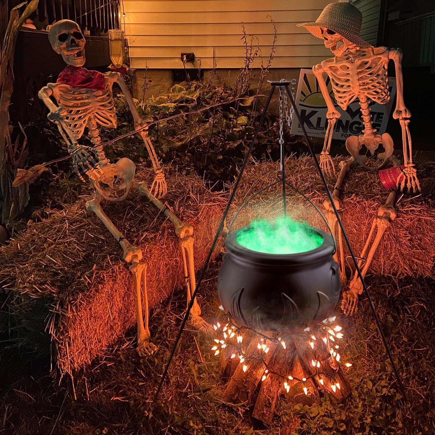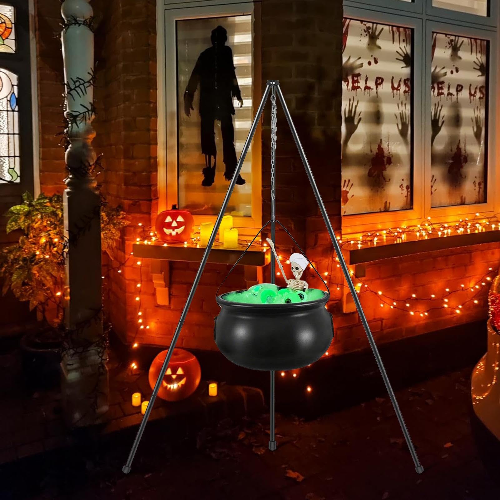 Dieser mega coole Hexenkessel ist der Hit für jede Halloween-Party! Riesige 130cm hoch mit stabilem Metall-Stativ - ein echter Hingucker. Mit grüner LED-Beleuchtung die gruselig leuchtet - perfekte Stimmung garantiert! Aus robustem Kunststoff, wetterfest für draußen oder innen. Super einfach aufzubauen, kein Werkzeug nötig. Perfekt für Süßigkeiten, als Deko für Garten, Haus oder Grusel-Party. Ob alleine oder mit anderen Halloween-Dekos - damit erschaffst du eine unheimlich gute Atmosphäre. Ein tolles Geschenk für Kinder und Halloween-Fans - damit wird deine Party unvergesslich!