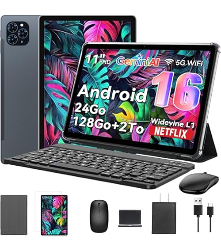 Boah, das ist mal ein Tablet! Das TABWEE T60 Pro mit riesigem 13,4 Zoll Display und flüssigen 120Hz - perfekt für Gaming, Arbeit und Videos. Mit Android 15 und Gemini AI bist du technisch immer up-to-date. Der Unisoc T7280 Octa-Core Prozessor rockt jedes Spiel und Multitasking. 24GB RAM (8+16 erweiterbar) und 256GB Speicher (erweiterbar auf 2TB!) - da passt alles drauf! Der 10.000mAh Akku hält ewig und mit 18W Schnelladung bist du schnell wieder startklar. Das Beste: Komplett-Set mit Tablet, Bluetooth-Tastatur, Maus, Schutzhülle, Stift und Ladegerät - einfach auspacken und loslegen! Widevine L1 sorgt für HD-Streaming auf Netflix und Prime. Nur 7,9mm dünn und 748g leicht - perfekt für unterwegs. Dual-Kamera (16MP + 8MP) und Stereo-Lautsprecher runden das Paket ab. Egal ob Student, Gamer oder Kreativer - dieses Tablet kann alles!