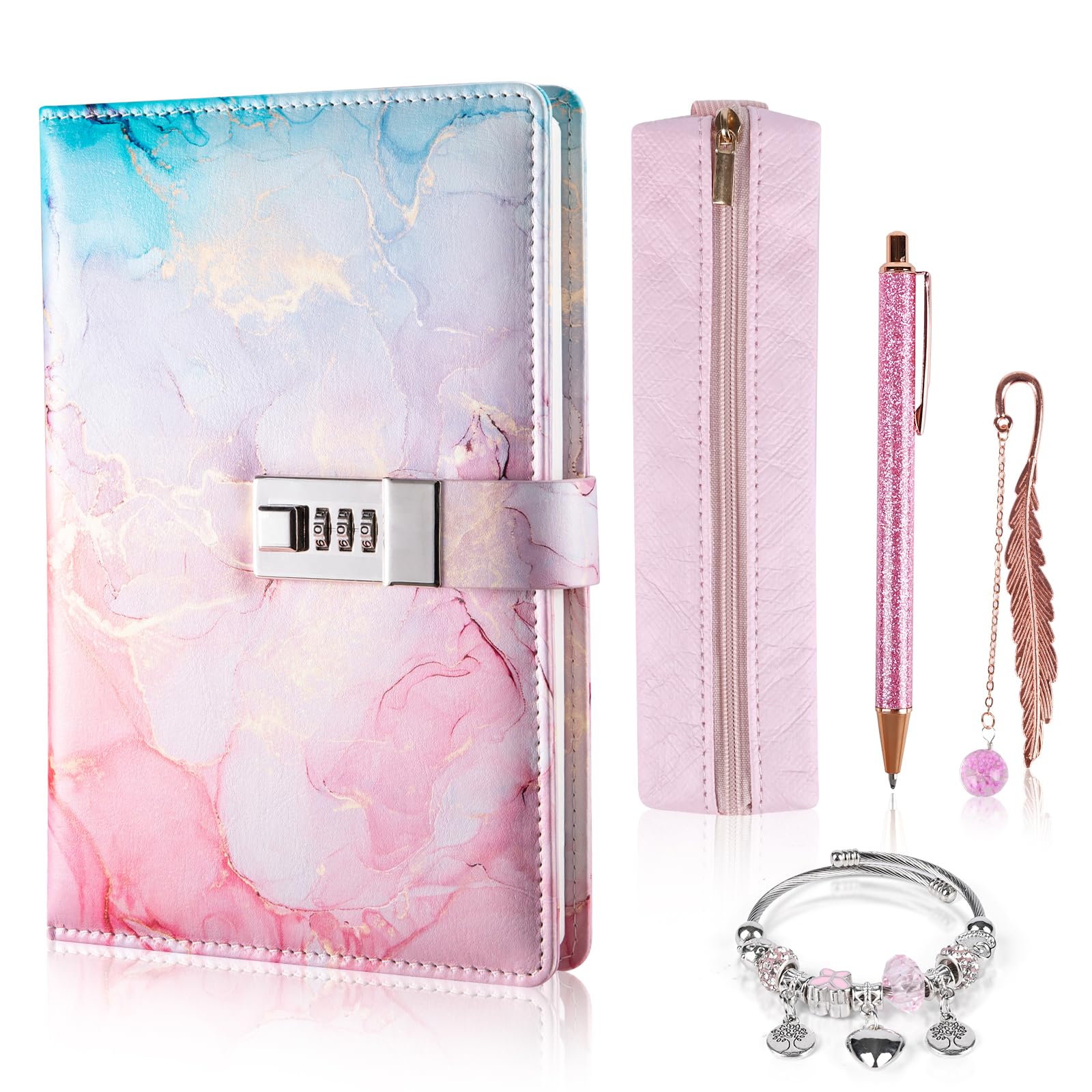 Hey, kennst du das? Man hat so viele Geheimnisse, die man niemandem erzählen will... Mit diesem super süßen Tagebuch mit Schloss können Mädchen ab 8 Jahren endlich all ihre Gedanken und Geheimnisse sicher aufbewahren! Das digitale Code-Schloss mit Zahlen von 0-9 bietet hunderte Kombinationsmöglichkeiten - so bleibt das Tagebuch wirklich privat! Im Set ist alles enthalten, was das Herz begehrt: ein 180-seitiges A5-Tagebuch (8,58 x 5,79 Zoll), eine Schreibwarentasche, bunte Kugelschreiber, ein Armband, eine kleine Brieftasche, ein Lesezeichen und 8 coole Aufkleber zum Personalisieren. Die wasserdichte PU-Hülle schützt vor Flecken und das hochwertige Papier inside sorgt für ein flüssiges Schreibgefühl ohne Tintenkleckse. Perfekt als Geschenk für Geburtstage, Weihnachten, Halloween oder zur Einschulung! Die sanften Farbverläufe auf dem Cover sehen nicht nur toll aus, sondern regen auch die Kreativität an. Mädchen können das Tagebuch nicht nur für persönliche Einträge nutzen, sondern auch als Planer, Hausaufgabenheft oder für Unterrichtsnotizen. So macht Schreiben richtig Spaß und die Fantasie wird angeregt!