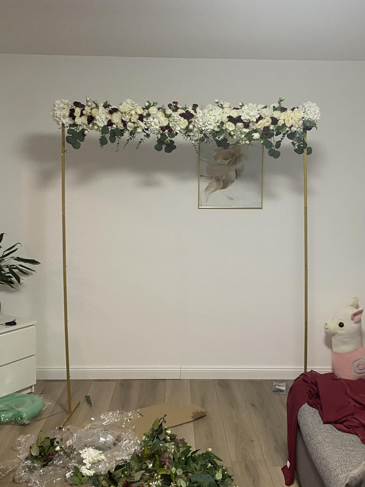 Wow, dieser Hochzeitsbogen ist echt vielseitig! Mit seinen 2x2 Metern ist er perfekt für deine Gartenhochzeit, aber auch für Geburtstage oder Jubiläen. Das coole an dem Teil: Der Schmetterlingsknopf macht die Montage super einfach und der Ständer steht bombenfest. Keine Sorge bei Regen - die Kunststoffbeschichtung schützt vor Rost. Aus robusten, verzinkten Eisenrohren gefertigt, hält der Bogen locker 10 kg an Deko. Stell dir vor: Du bekommst 2 Basisstangen, 2 Querträger und 4 vertikale Balken. Aber Achtung - die Deko musst du separat besorgen! Perfekt zum Selbermachen mit Blumen, Luftballons oder Girlanden. Die T-förmigen Füße sorgen für mega Stabilität, selbst bei Wind. Übrigens: Die weiße Farbe passt zu fast jedem Stil und die Maße von 6,6x6,6 Fuß sind ideal für den Außenbereich. Einfach aufbauen und deine Traumkulisse erschaffen!