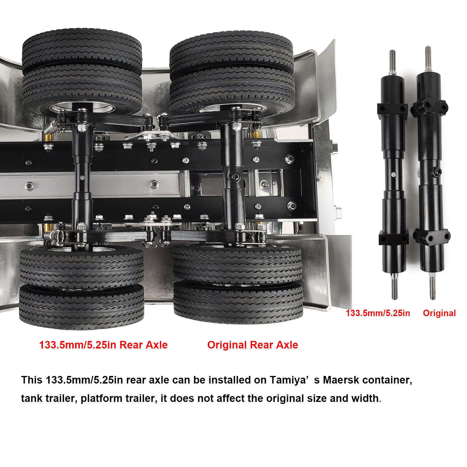 Upgrade deinen RC-Sattelzug mit dieser robusten Metall-Hinterachse von AXspeed! Hergestellt aus hochwertiger Aluminiumlegierung ist sie deutlich langlebiger als die Originalteile. Mit 133,5 mm Länge passt sie perfekt zu Tamiya 1/14 Scale Modellen - egal ob Container, Tank- oder Plattformanhänger. Die Achse ist nicht angetrieben und überzeugt durch ihre hohe Tragfähigkeit. Selbst bei voller Beladung bleibt dein Truck stabil auf der Strecke. Einfach zu installieren - kein Basteln oder Modifizieren nötig. Das edle Metall-Finish sieht nicht nur gut aus, sondern sorgt auch für mehr Realismus. Perfekt für alle, die ihre RC-Fahrzeuge auf das nächste Level bringen wollen. Die Präzisionsfertigung garantiert perfekten Sitz und läuft geschmeidiger als Kunststoffachsen. Ob für Rennen oder Show - mit dieser Achse machst du nichts verkehrt. Komplett mit allen notwendigen Befestigungselementen. Dein Truck wird es dir danken!