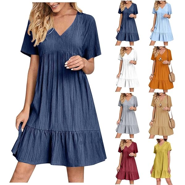 • Damen Tank Top Kleid Knielang - Leichtes Sommerkleid Mit Rüschen