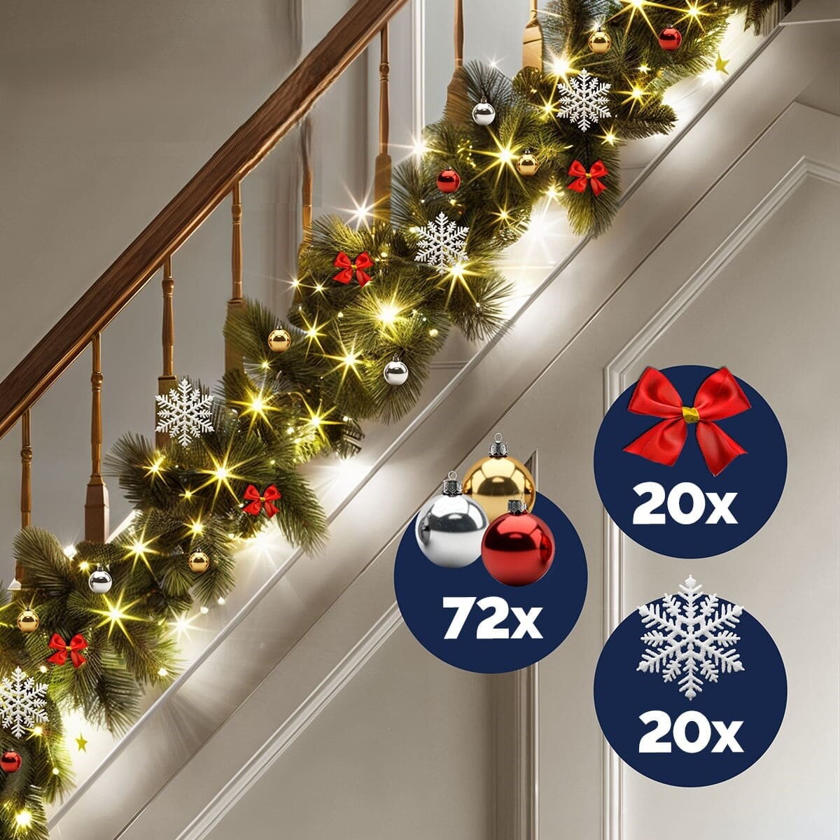 • 10m Tannengirlande Weihnachtsdekoration - Für Baum, Treppe & Innenbereich
