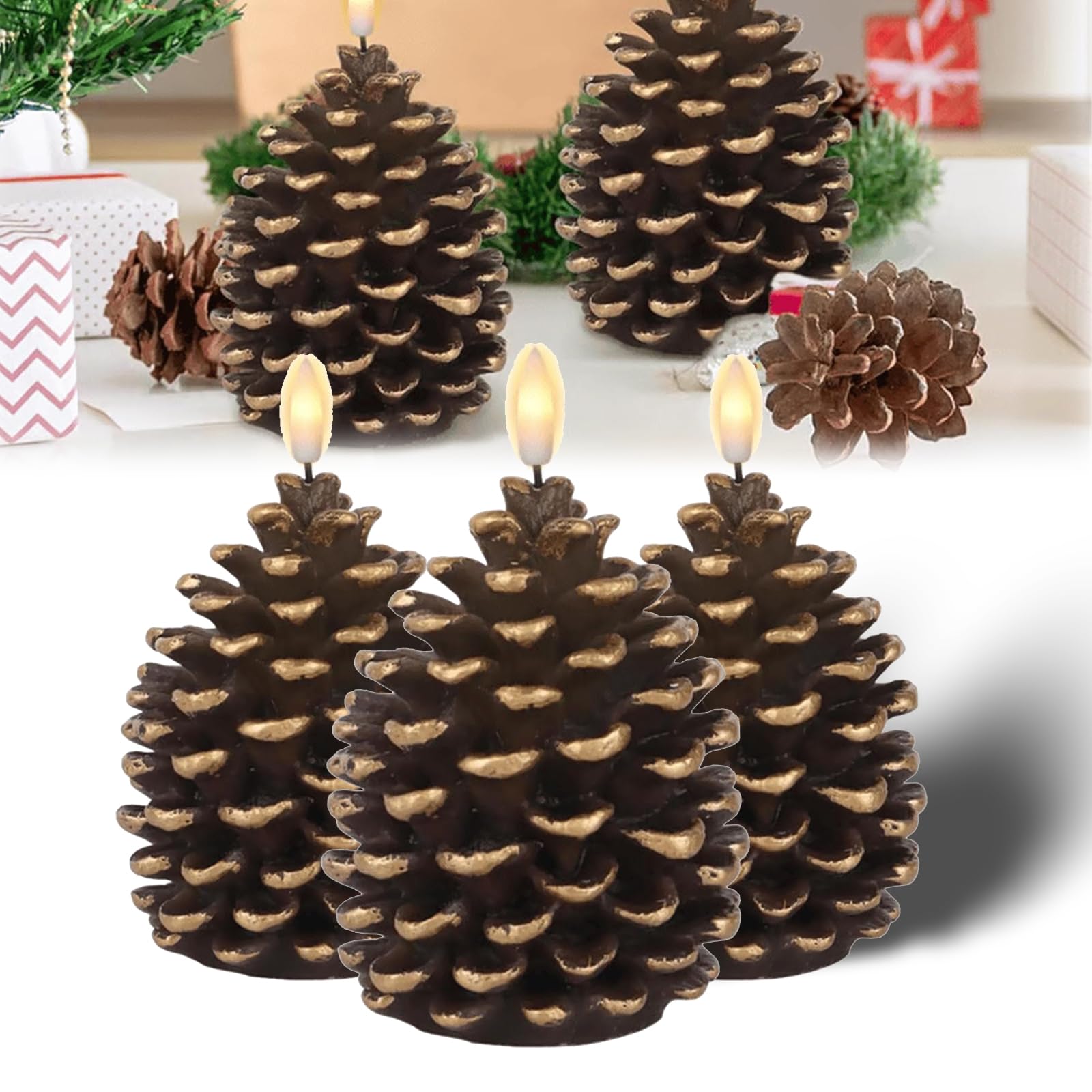 Weihnachtsstimmung ohne Risiko! Diese süßen Tannenzapfen-Kerzen sehen aus wie echt, brennen aber mit LED-Licht. Das flackernde Licht sieht total gemütlich aus - fast wie echte Kerzen! Jede Kerze ist 10x5,5x5,5 cm groß und wiegt 120 g. Mit Timer-Funktion und 800 Stunden Brenndauer - das hält den ganzen Advent! Batteriebetrieben (3x LR44 enthalten), also keine Kabel und überall aufstellbar. Perfekt für den Kaminsims, Esstisch oder als Tischdeko. Super sicher für Haushalte mit Kindern oder Haustieren. Macht dein Zuhause weihnachtlich gemütlich - ohne dass du dir Sorgen um Feuer machen musst. Einfach einschalten und den Zauber genießen!