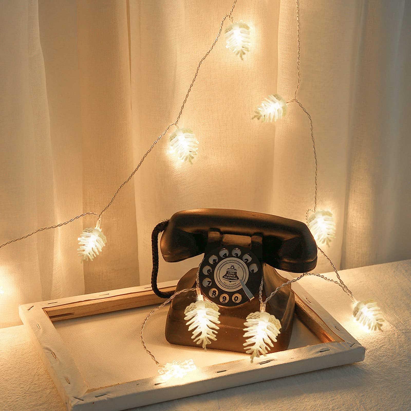 Magische Wald-Atmosphäre für dein Zuhause! Diese bezaubernde Lichterkette mit 10 silbernen Tannenzapfen bringt Natur-Feeling in deine vier Wände. Die 1,5 Meter lange Kette ist perfekt für Fensterbänke, Kaminsimse oder als Tischdekoration. Die warmweißen LEDs sorgen für eine gemütliche Stimmung - nicht nur zu Weihnachten, sondern das ganze Jahr über. Batteriebetrieben (2x AA, nicht im Lieferumfang) bedeutet maximale Flexibilität bei der Platzierung. Kein lästiges Kabelverlegen, einfach aufstellen und einschalten! Die detailreich gestalteten Zapfen sehen täuschend echt aus und verbreiten einen eleganten, naturverbundenen Charme. Robust verarbeitet und mit langlebiger LED-Technologie - da hast du lange Freude daran. Ob im Wohnzimmer, Schlafzimmer oder als festliche Deko - diese Lichterkette macht einfach überall eine gute Figur!