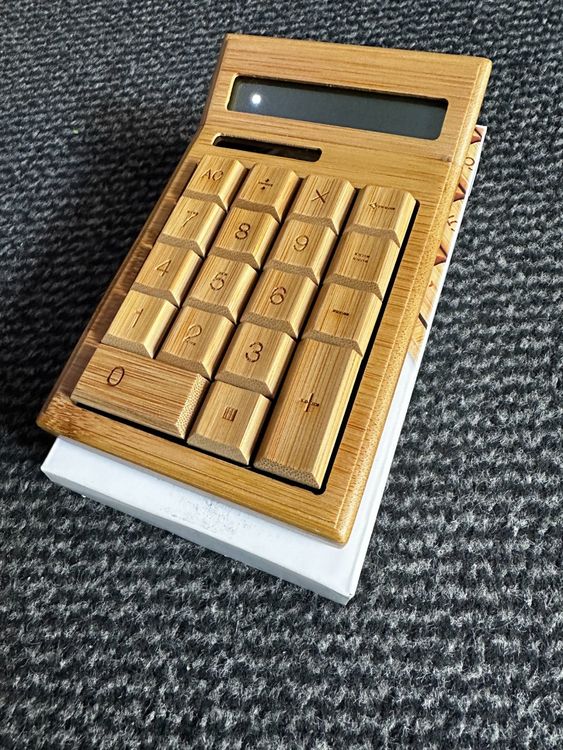 Stylischer Rechner mit Natur-Charme! Dieser Fockety Taschenrechner aus Bambus-Holz sieht nicht nur gut aus, sondern rechnet auch präzise. 12-stelliges LCD-Display - super klar ablesbar. Mit Solar- und Batterie-Stromversorgung - immer einsatzbereit. 29 Tasten mit erhöhter Druckempfindlichkeit - angenehmes Tippgefühl. Standard-Rechenfunktionen plus Prozent und Speicherfunktionen. Umweltfreundliches Holzmaterial - Zahlen eingraviert, verblassen nicht. Perfekt für Büro, Schule oder Zuhause. Macht jede Rechnung zum Vergnügen - hol dir diesen natürlichen Begleiter!