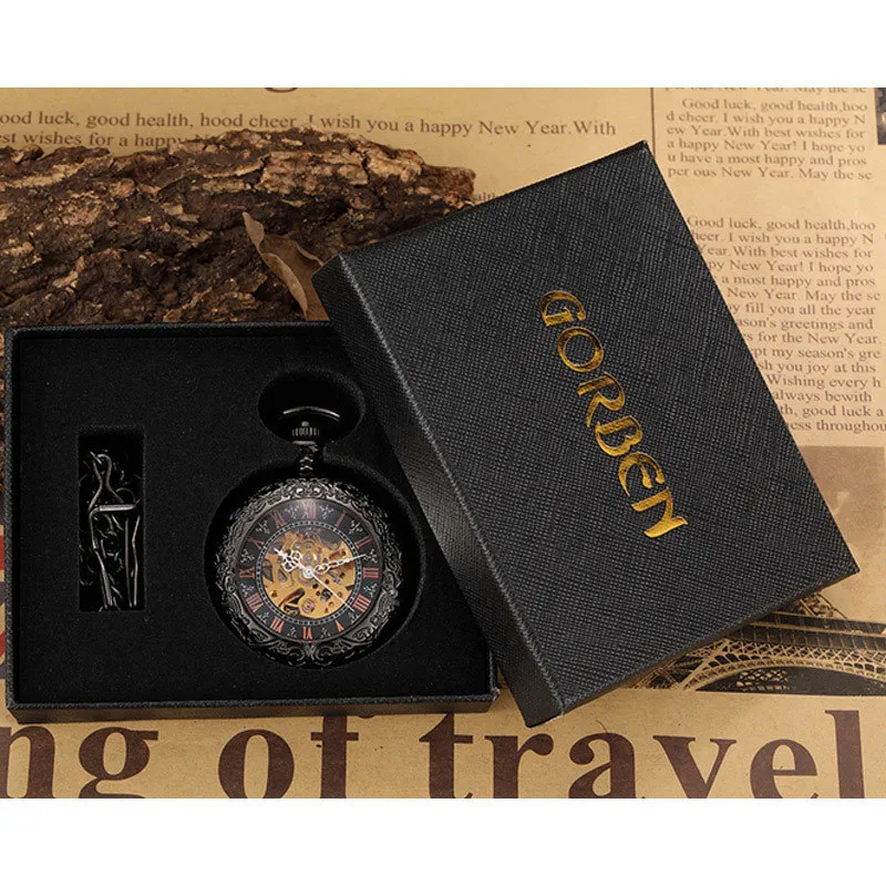 Zeitreise gefällig? Diese mechanische Taschenuhr im Vintage Steampunk Design ist ein absoluter Hingucker! Mit Skelett-Zifferblatt und römischen Ziffern siehst du das filigrane Uhrwerk in Aktion. Das 47mm Gehäuse aus Metalllegierung kommt mit einer 38cm Kette und Clip - perfekt für Weste oder Anzug. Handaufzug erforderlich: Einfach täglich 10-15 Umdrehungen aufziehen und die Uhr läuft 24 Stunden. Zeit einstellen ist kinderleicht - Krone herausziehen und drehen. Im Lieferumfang: Taschenuhr, Geschenkbox, Kette und Mikrofasertuch. Perfekt für formelle Anlässe oder als stylisches Accessoire im Alltag. Ein besonderes Geschenk für Geburtstage, Weihnachten, Hochzeiten oder Jahrestage - für ihn oder sie! 90 Tage Geld-zurück-Garantie geben dir Sicherheit. Einfach aufziehen und sich an der mechanischen Präzision erfreuen. Ein Stück Geschichte für deine Tasche!