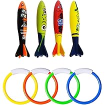 Dieses Tashce Tauchspielzeug-Set macht jeden Pool-Besuch zum Abenteuer! 11 bunte Teile in knalligen Farben wie Orange, Gelb, Blau und Grün - die sehen unter Wasser einfach super aus. Aus hochwertigem Kunststoff mit glatten Kanten, nichts scharfes was verletzen könnte. Perfekt für Schwimmanfänger um das Tauchen zu üben oder einfach nur für Spaß im Wasser. Die leuchtenden Farben sind auch unter Wasser gut sichtbar - da findet man die Ringe leicht wieder. Super für die ganze Familie ob im Pool, See oder Meer. Macht das Schwimmtraining viel interessanter und fördert die Bewegung im Wasser. Einfach ins Wasser werfen und los geht der Tauchspaß! Das perfekte Sommer-Geschenk für kleine Wasserratten.