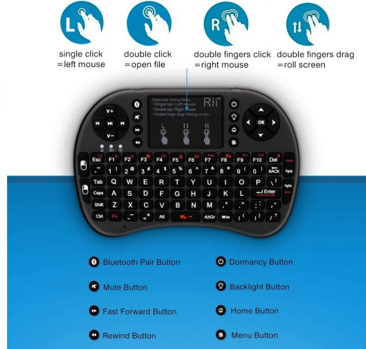 • Rii Kabellose Mini Tastatur - Bluetooth Mit 3 Kanälen & Beleuchtung