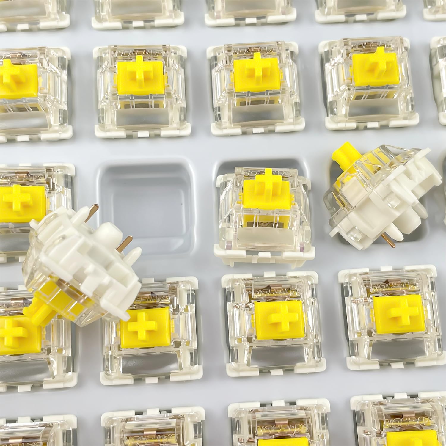 Für alle Mechanical Keyboard Enthusiasten: Die Gateron Pro V3 Schalter in milchiggelb sind ein Traum! Komplett aus Polyoxymethylen (POM) gefertigt, werden sie mit der Zeit immer glatter - je mehr du tippst, desto besser werden sie! Die verbesserte abnehmbare Lichtleitersäule mit gebogener Streufläche und hochtransparentem Material sorgt für perfekt gleichmäßiges, weiches RGB-Licht - mindestens 30% bessere Lichtdurchlässigkeit als der Vorgänger V2! Werkseitig vorgeschmiert, sind sie sofort einsatzbereit und liefern ein seidiges, leichtes Tippgefühl. Die 5-polige Bauweise garantiert maximale Stabilität, die verbesserten Goldkontakte mit Schalterwelle sorgen für bessere Oxidation- und Vulkanisationsbeständigkeit. Technische Daten: Betriebskraft 50±10gf, Gesamttastenweg 3,6±0,2mm, Vorfahrabstand 2,0±0,6mm, und eine unglaubliche Lebensdauer von ca. 80 Millionen Betätigungen! Verpackt in einer stylischen PVC-Kunststoffbox, die jeden Schalter einzeln schützt und verbogene Stifte verhindert. Das perfekte Geschenk für alle, die ihre mechanische Tastatur auf das nächste Level bringen wollen!