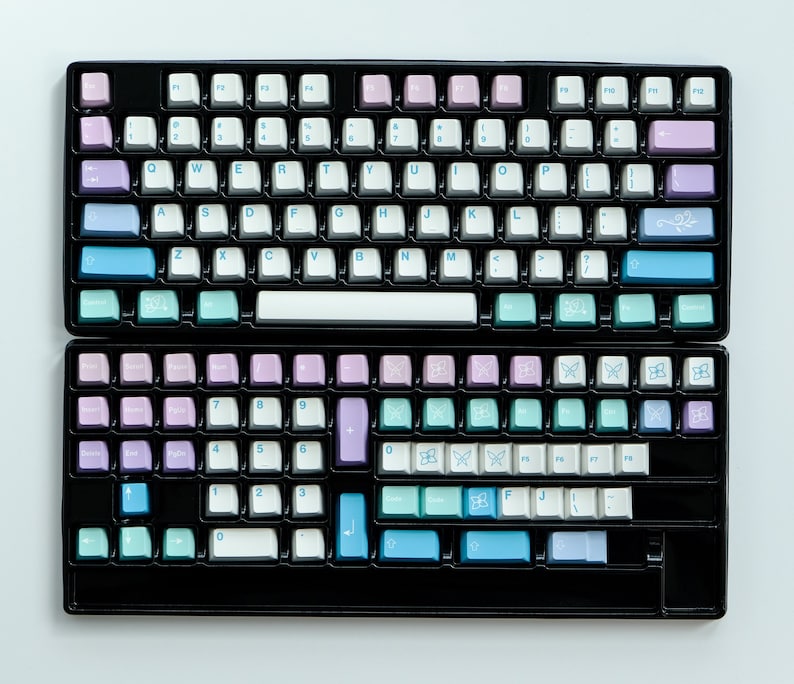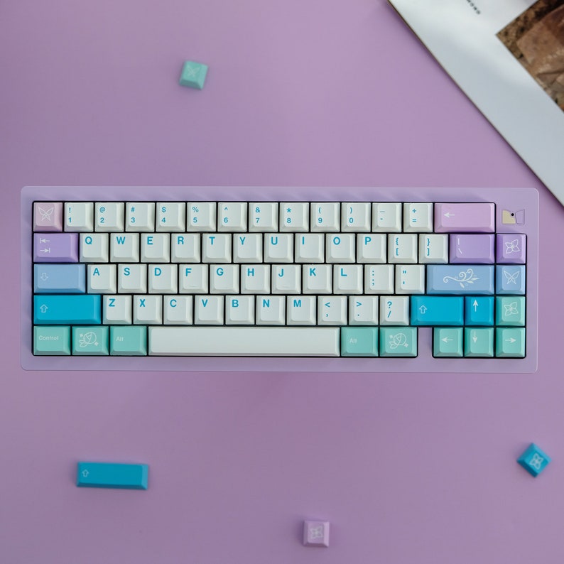 Verwandle deine mechanische Tastatur in ein wahres Kunstwerk mit diesen wunderschönen PBT-Tastenkappen von mintcaps! Das Fairy-Design in Weiß, Rosa und Lila sieht einfach traumhaft aus. Aus hochwertigem PBT-Material gefertigt, das nicht glänzt und extrem langlebig ist. Die Farben verblassen nie dank fortschrittlicher Dye-Sub-Technologie. Mit 130 Tasten passt das Set auf die meisten Tastaturlayouts von 60% bis 100%. Das ergonomische Cherry-Profil sorgt für komfortables Tippen über Stunden. Kompatibel mit Cherry MX, Gateron, Kailh und anderen Standard-Schaltern. Inklusive Keycap-Entferner für einfachen Wechsel. Egal ob für Gaming, Arbeit oder einfach nur zum Verschönern - mit diesen Keycaps macht das Tippen gleich doppelt so viel Spaß!