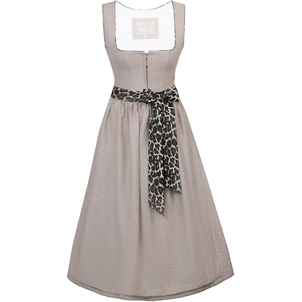 O'zapft is! Dieses Marjo Dirndl in schickem Beige-Ton ist ein absoluter Hingucker für jedes Trachtenfest! Mit 70cm Rocklänge (Midi) sitzt es perfekt und der Reißverschluss vorne macht das Anziehen super einfach. Die abnehmbare Schürze mit dem stylischen Leo-Muster und die glitzernden Details geben dem Dirndl diesen besonderen Pep! Aus 67% Viskose, 21% Nylon und 12% Leinen - super angenehm zu tragen. Mit Nahttaschen im Rock und geradem Ausschnitt ist es sowohl praktisch als auch schick. Dazu eine weiße Dirndlbluse und du bist bereit für Wiesn, Oktoberfest oder jedes andere Trachten-Event! Das Futter aus 80% Polyester und 20% Baumwolle sorgt für zusätzlichen Komfort. Lieferung inklusive Dirndl und Schürze - weiteres Zubehör separat erhältlich. Zeitlos schön und von bester Marjo-Qualität! Perfect für alle, die es klassisch aber mit modernem Touch mögen!