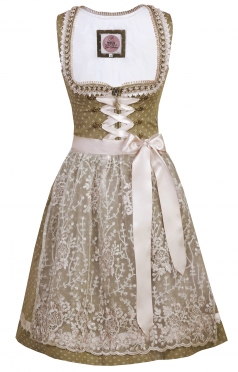 • Marjo Dirndl Solea Taupe 70cm - Beiges Damen Dirndl Mit Leo-Schürze