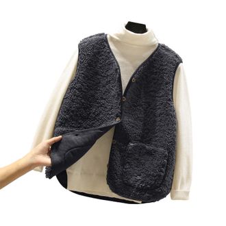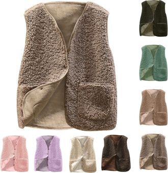 Generisch Damen Teddy Fleece Weste - Ärmellose Plüschweste Für Herbst & Winter