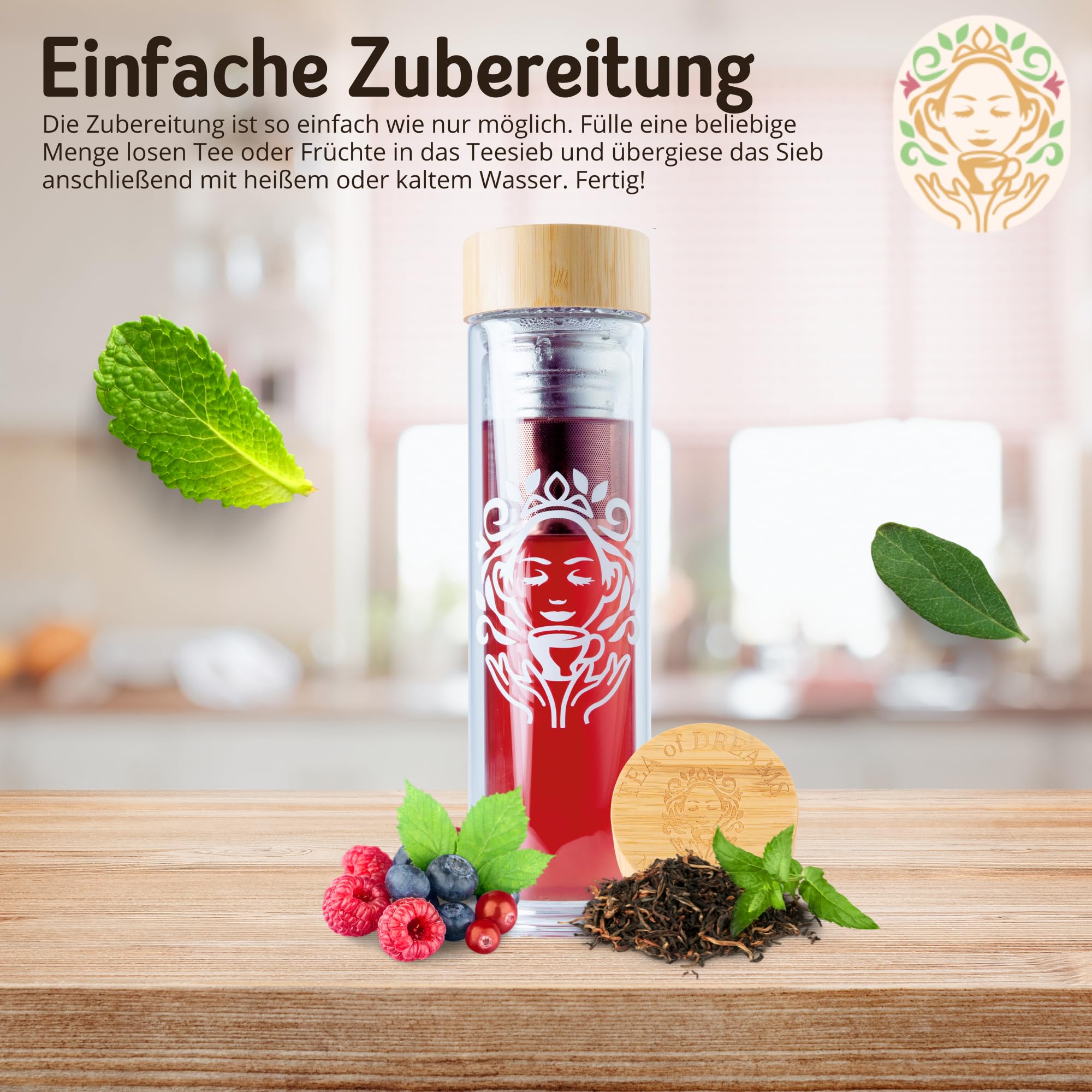 Oh, Teeliebhaber aufgepasst! Diese Glas-Teeflasche ist total clever - mit integriertem Sieb, doppelwandig und super praktisch! Einfach Teeblätter rein, Wasser drauf, Deckel zu und umdrehen - schon brüht dein Tee perfekt! Das Sieb trennt die Blätter zuverlässig ab, kein bitterer Nachgeschmack mehr. Hält Temperaturen von -20°C bis 100°C aus - also auch super für Eistee! In 5 Größen erhältlich (280/350/420 ml) und in coolen Farben wie Pink, Gold oder Schwarz. Auslaufsicher und leicht - perfekt für Büro, Reisen oder unterwegs. Wird sogar in ner hübschen Geschenkbox geliefert! Mach dir jederzeit perfekten Tee, ohne Aufwand. Einfach genial!