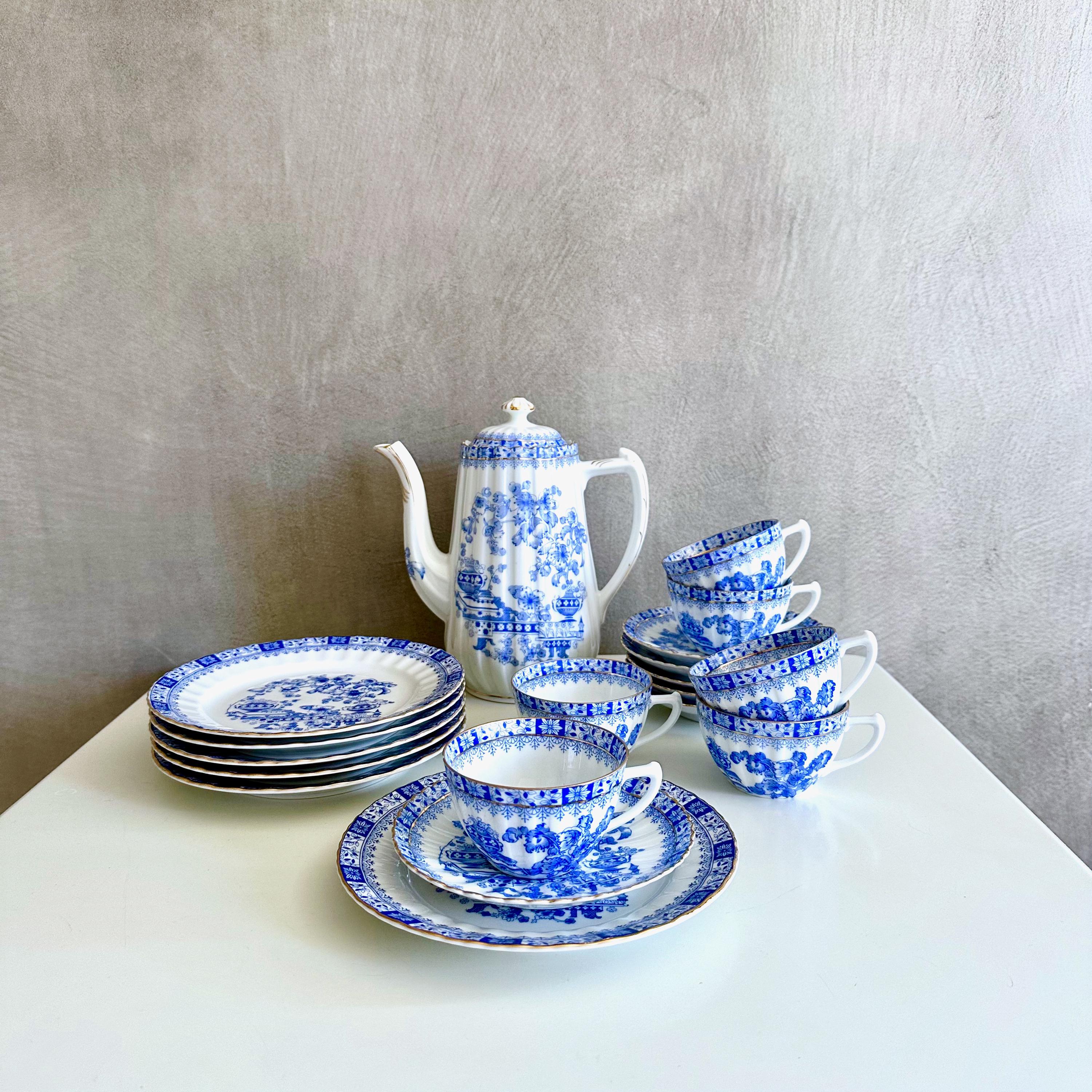 Home ESPRIT Teekanne 600ml Blau Weiß - 2 Stück Edelstahl Eisen Set