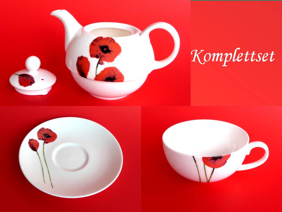Leonardo Collection Teekanne Mit Tassen - Mohnblumen Design Keramik Set