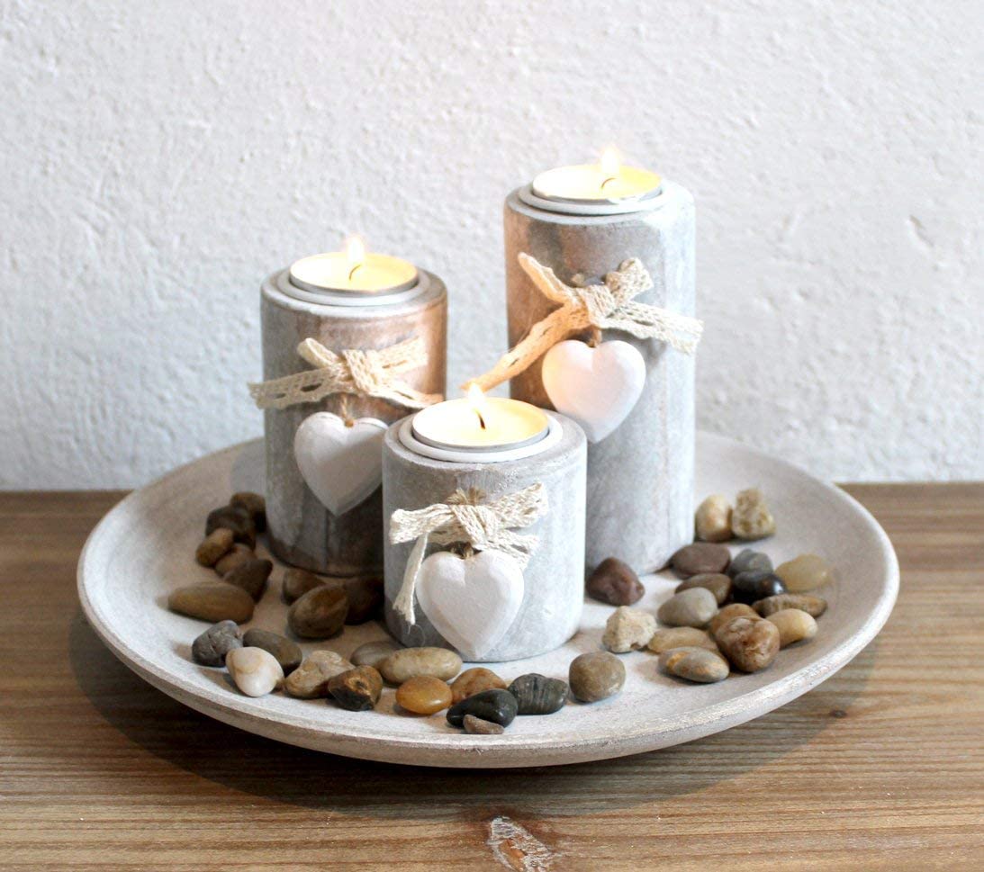 Schlicht, modern und total gemütlich: Dieses 3er-Set Teelichthalter in Beton-Optik passt perfekt zu jedem Einrichtungsstil. Hergestellt aus Magnesit und Quarzsand, jeweils in unterschiedlichen Höhen (6 cm, 8,5 cm, 10 cm). Unter jedem Halter sind weiche Gummipads, die deine Möbel vor Kratzern schützen. Die matte, graue Oberfläche wirkt edel und harmonisch. Ob auf dem Esstisch, im Regal oder als Geschenk – diese Halter setzen Teelichter stimmungsvoll in Szene. Einfach ein Lichtlein rein, anzünden und genießen!