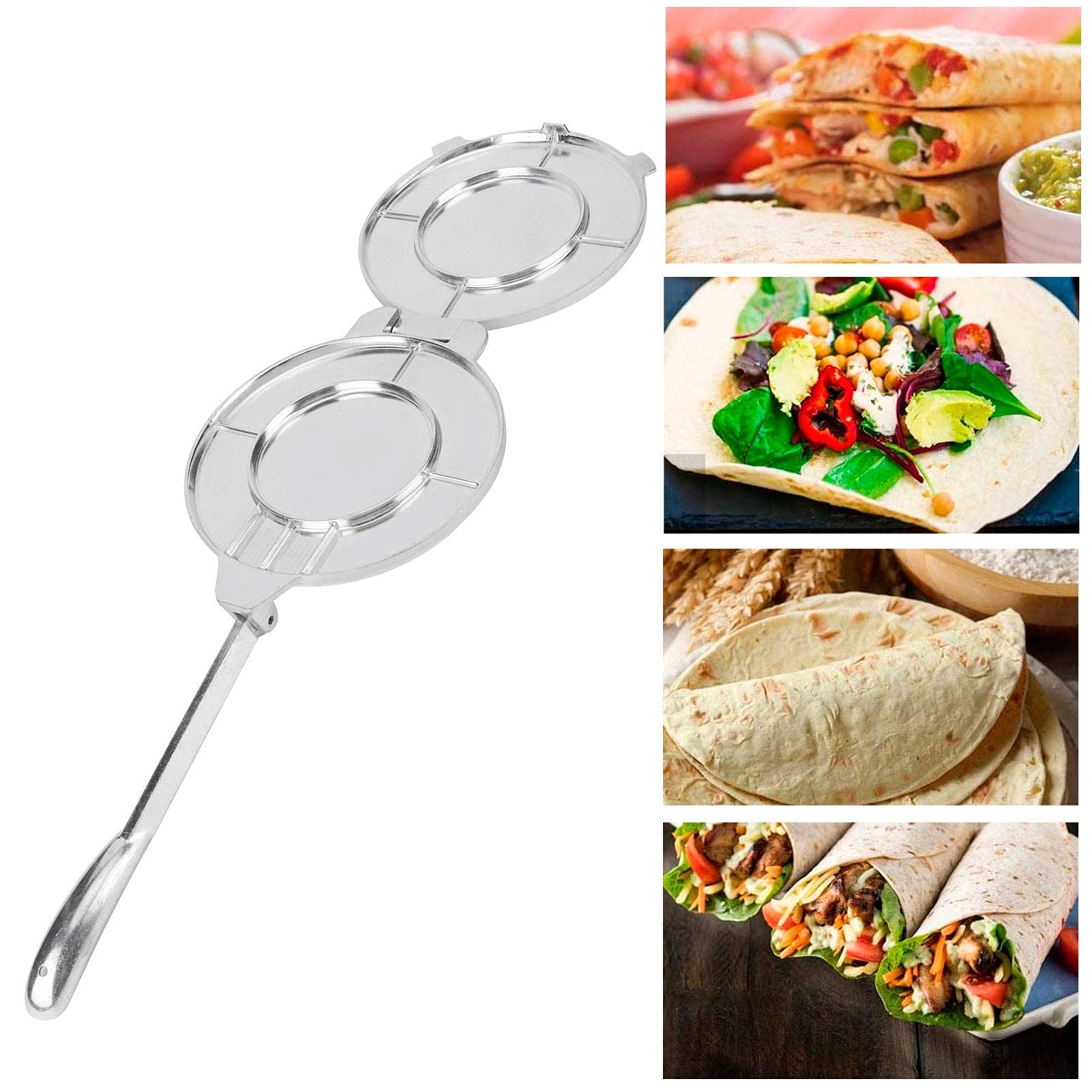 Wer liebt sie nicht - frische, hausgemachte Tortillas! Mit dieser praktischen Tortilla Presse aus Aluminiumlegierung wird das Pressen zum Kinderspiel. Einfach den Teig in die Mitte legen, zuklappen und schon hast du perfekt geformte Tortillas. Der ergonomische Griff liegt super in der Hand und macht das Pressen richtig angenehm. Besonders praktisch: Die Presse lässt sich nach Gebrauch einfach zusammenklappen und platzsparend verstauen. Perfekt für alle, die gerne mexikanisch kochen oder einfach mal selbstgemachte Pfannkuchen ausprobieren möchten. Die Aluminiumlegierung ist nicht nur leicht, sondern auch super langlebig - da macht jahrelanger Gebrauch überhaupt nichts aus. Ob für Tacos, Quesadillas oder Wraps - mit dieser Presse gelingen dir immer gleichmäßige, runde Tortillas. Kein Herumgeknete mehr mit dem Nudelholz! Einfach, schnell und super effektiv. Perfekt für die heimische Küche, aber auch ein tolles Geschenk für Hobbyköche. Mach deine Tortillas einfach selbst - frischer schmeckt's doch eh am besten! Und das Beste: Die Reinigung ist ein Kinderspiel, einfach abwischen und fertig.