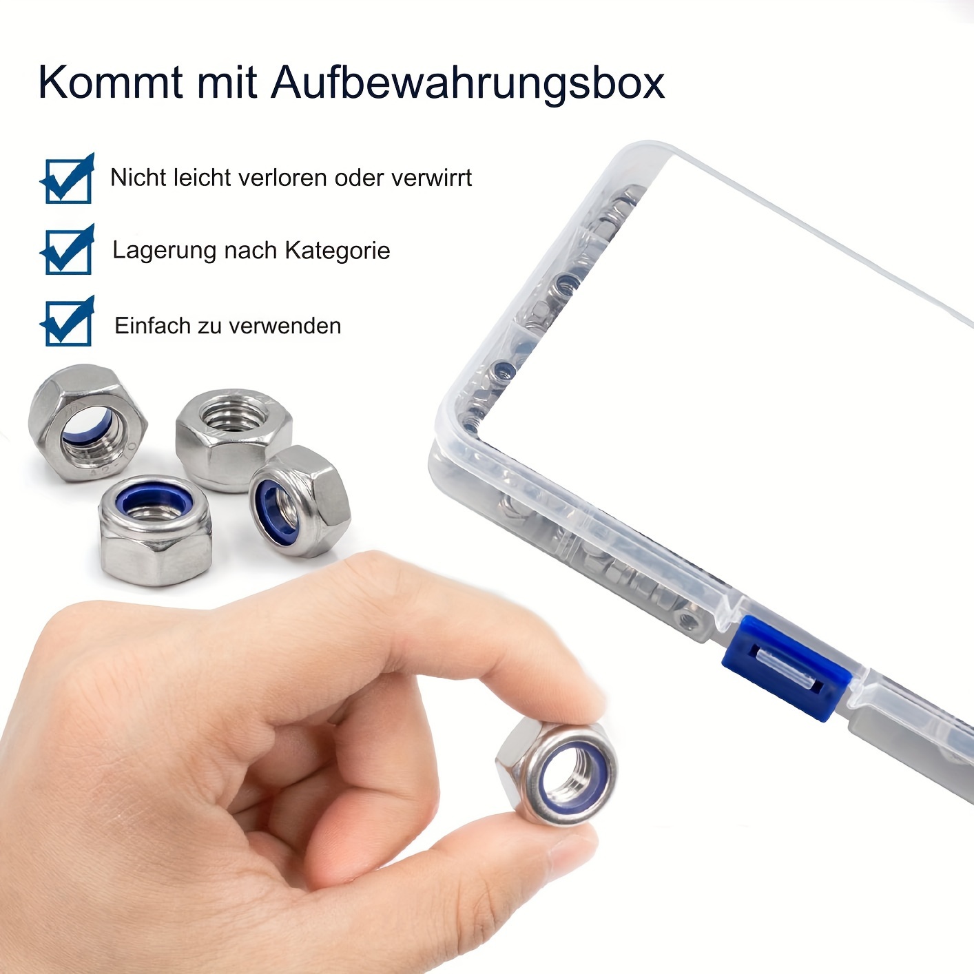 Hey, suchst du wirklich gute Sicherungsmuttern, die nicht locker werden? Dieses Set hat alles, was du brauchst! 220 Teile in den gängigsten Größen von M3 bis M12 - damit bist du für fast jedes Projekt gerüstet. Die Muttern sind aus robustem 304 Edelstahl gefertigt, also rostfrei und super langlebig. Der besondere Clou ist der Nyloneinsatz, der verhindert, dass sich die Muttern von alleine lösen. Perfekt für Möbelmontage, Fahrzeugreparatur oder Maschinenbau. Und das Beste: Alles kommt ordentlich sortiert in einer praktischen Aufbewahrungsbox - kein langes Suchen mehr! Die Größen sind klar gekennzeichnet: M3 (70 Stück), M4 (60 Stück), M5 (40 Stück), M6 (30 Stück) und M8 (20 Stück). Ob du nun ein Profi oder Heimwerker bist - mit diesem Set machst du nichts verkehrt. Einfach die passende Größe nehmen und festdrehen - die Muttern halten, was sie versprechen!