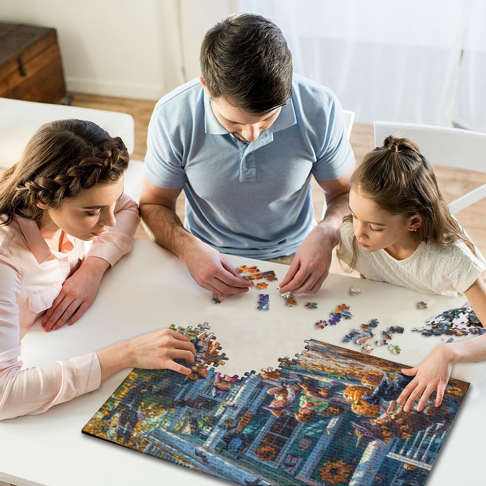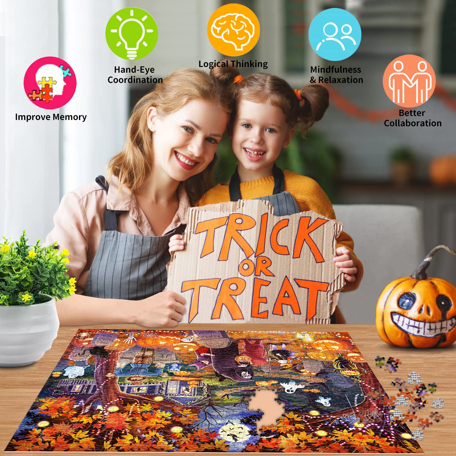 Perfekt für gemütliche Herbstabende! Dieses 1000-teilige Halloween-Puzzle mit gruseligem Motiv bringt die ganze Familie zusammen. Das fertige Bild misst 50x70cm und zeigt ein detailreiches Gruselhaus mit mystischen Bäumen - ideal für die Halloween-Deko. Aus stabilem Recycling-Karton mit präzisem Schnitt für perfekten Halt. Inklusive Farbreferenz-Poster für einfacheres Zusammensetzen. Super für Entspannung nach der Arbeit oder gesellige Spieleabende. Ob alleine oder gemeinsam - dieses Puzzle garantiert stundenlangen Rätselspaß. Mach dein Zuhause gruselig schön mit diesem hochwertigen Puzzle!