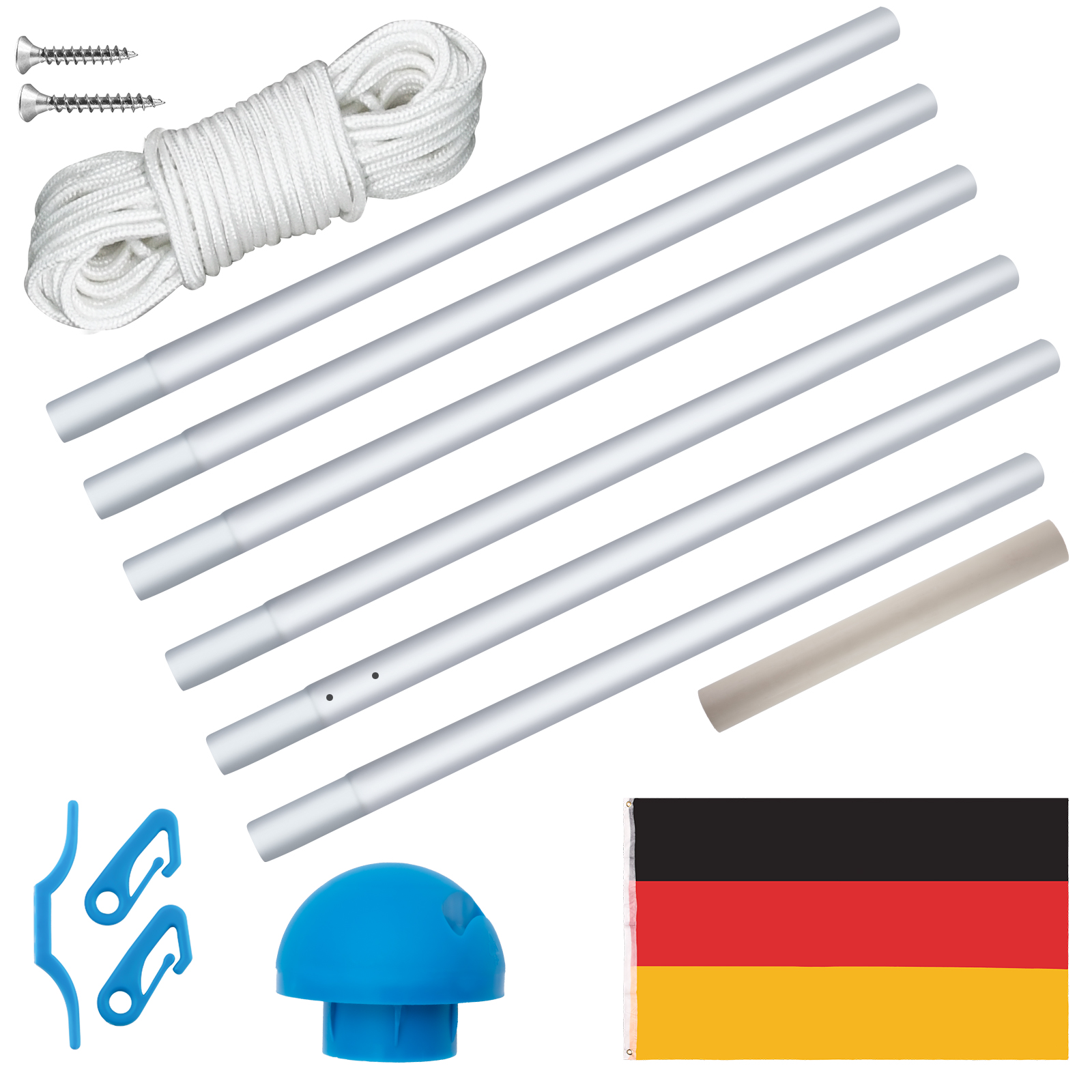 Teleskop Fahnenmast Alu 6m Mit Deutschlandfahne - Garten Flaggenmast