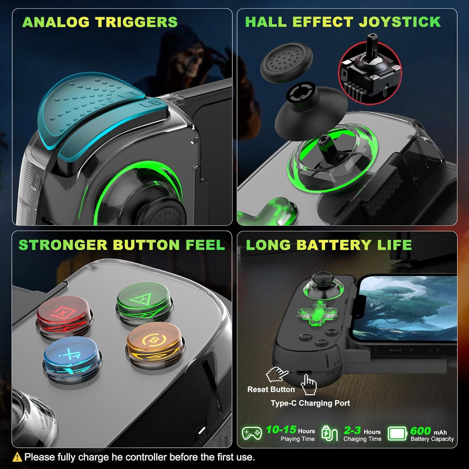 Zocke wie ein Profi - mit diesem genialen Teleskop-Gamepad für dein Smartphone! Der verstellbare Clip passt sich an Bildschirme von 13,6 bis 18,4 cm an - ideal für die meisten Handys und Tablets. Kompatibel mit Android, iOS und PC - spiele deine Lieblingsgames auf allen Plattformen! Mit 3 verschiedenen Modi: HID Standardmodus, Direct Play Mapping Modus und For Modus für optimale Performance. Die innovative Halbleiter-Kühltechnologie mit 7 RGB-Lüfterblättern hält dein Gerät auch bei langen Gaming-Sessions kühl. Besonders praktisch: Die zwei programmierbaren M1/M2 Tasten für individuelle Einstellungen. Technische Daten: 6W Leistung, Type-C Anschluss, 300 mAh Lithium-Akku. Im Lieferumfang: Gamepad, Ladekabel und Bedienungsanleitung. Perfekt für unterwegs, zu Hause oder bei LAN-Partys - nimm dein Gaming-Erlebnis überall mit hin! Die ergonomische Form liegt perfekt in der Hand und die präzisen Tasten garantieren beste Kontrolle. Verabschiede dich von lästigen Touch-Steuerungen und erlebe mobile Games wie nie zuvor!