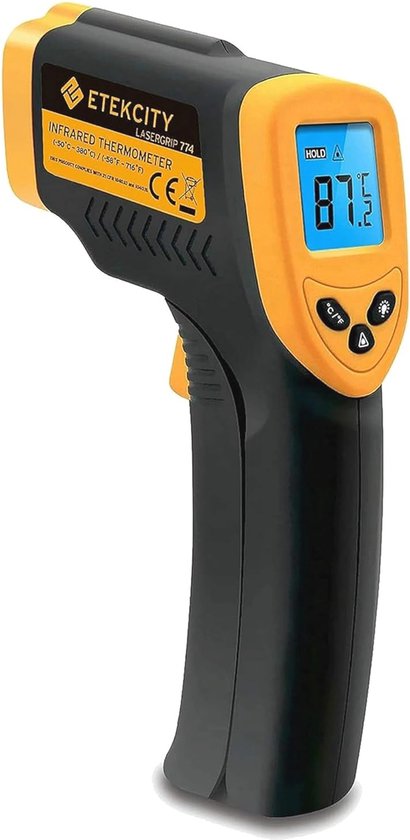 Tech-Freunde, dieses Infrarot-Thermometer ist ein echter Alleskönner! Misst Temperaturen berührungslos von -58°C bis 600°C - sicher, schnell und präzise. 🔥\n\nEinfach den Laser auf das Ziel richten, Knopf drücken und sofort hast du die Temperatur auf dem farbigen LCD-Display! Perfekt für heiße, gefährliche oder schwer erreichbare Objekte.\n\nDie vielen Funktionen sind beeindruckend: MAX/MIN-Temperatur-Messung, Umgebungstemperatur-Anzeige, Hoch- und Niedertemperatur-Alarm mit akustischem Signal - da vergisst du nichts!\n\nMit 12:1 Distanz-zu-Punkt-Verhältnis kannst du aus größerer Entfernung messen als mit den meisten anderen Thermometern. Und die Genauigkeit von ±1,5% ist wirklich top für den Preis!\n\nDer einstellbare Emissionsgrad (0,10-1,00) ermöglicht präzise Messungen an verschiedenen Materialien. Und die Selbstkalibrierungs-Funktion sorgt für dauerhafte Genauigkeit.\n\nSuper vielseitig einsetzbar: Für Elektro-Arbeiten, Lebensmittel-Temperaturkontrolle, Heizungs-Check, Automotive, HVAC - überall wo Temperatur wichtig ist. Aber Achtung: Nicht für die Messung menschlicher Körpertemperatur geeignet!\n\nMit dabei: Thermometer, deutsche Anleitung und AAA-Batterien. Einfach einschalten und loslegen - professionelle Messtechnik für jeden Haushalt!