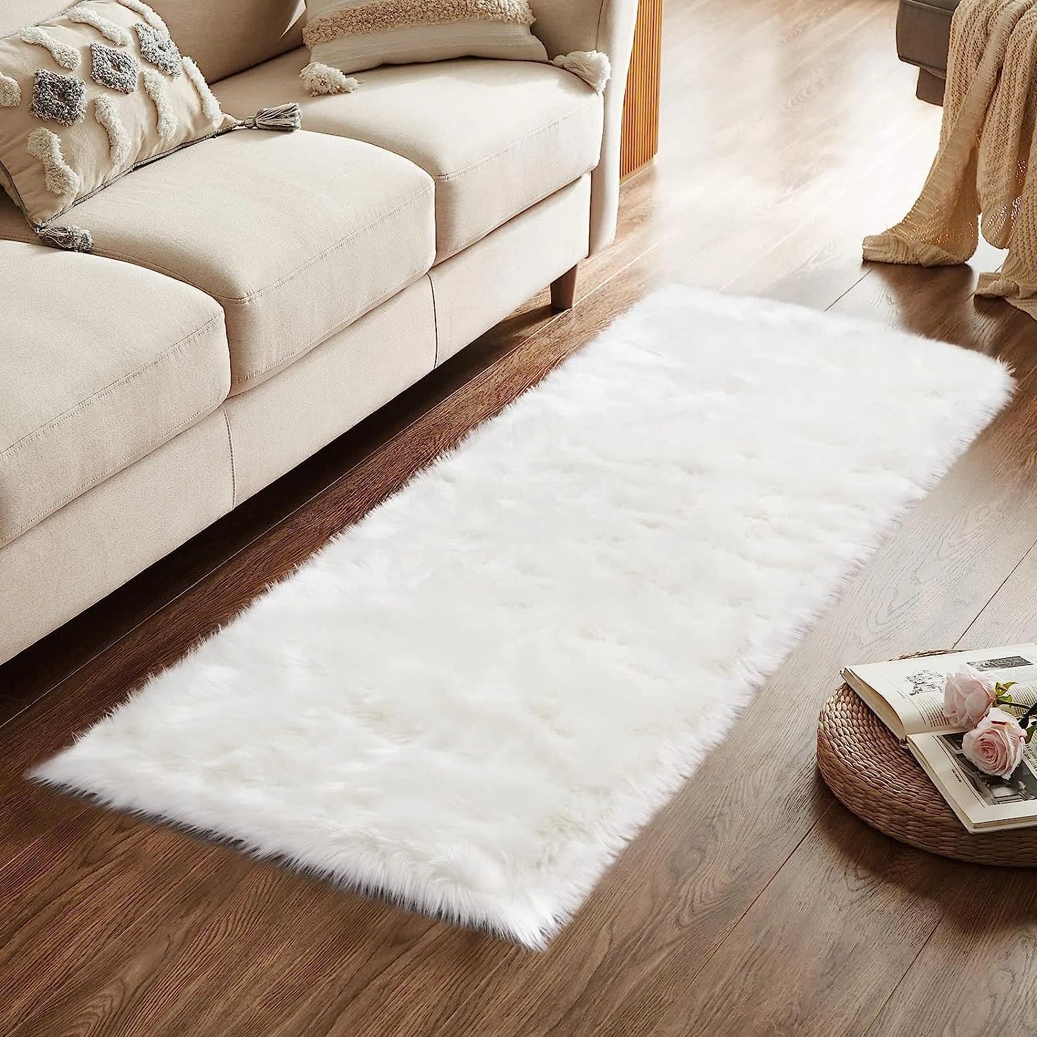Oh, ist der flauschig! Dieser Faux Lammfell Teppich bringt gemütliche Wohlfühl-Atmosphäre in jeden Raum! Mit seinen 60x120 cm passt er perfekt vor das Bett, neben das Sofa oder als kuschelige Insel im Kinderzimmer. Die 6 cm hohe Florhöhe fühlt sich an wie auf Wolken laufen - einfach himmlisch weich! Hergestellt aus hochwertigem Polyester, der nicht nur super aussieht, sondern auch praktisch ist: maschinenwaschbar bei 30°C! Einfach in die Waschmaschine, schonend waschen und an der Luft trocknen - danach wieder ausschütteln und er ist wie neu! Die rutschfeste Wildleder-Rückseite sorgt dafür, dass der Teppich sicher liegen bleibt - super wichtig, besonders wenn Kinder oder ältere Menschen im Haus sind. Die unregelmäßige Form verleiht dem ganzen noch eine extra Portion Charme! Ob als gemütlicher Sitzplatz für die Kleinen, als stylischer Akzent im Wohnzimmer oder als kuschelige Unterlage für die Yogamatte - dieser Teppich ist einfach vielseitig! Und das beste: Er sieht aus wie echtes Lammfell, ist aber viel pflegeleichter und günstiger! Also, macht es euch gemütlich und holt euch diesen flauschigen Traum nach Hause!