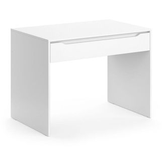 Aus hochwertiger Spanplatte mit Melaminharzbeschichtung gefertigt, ist der Tisch super pflegeleicht und kratzresistent. Die weiße, matte Oberfläche sieht nicht nur stylisch aus, sondern passt auch in jedes Zimmer.