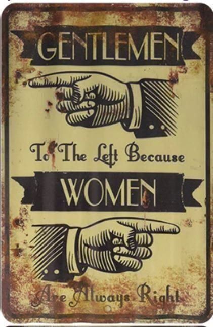 Dieses witzige Blechschild bringt garantiert jeden zum Schmunzeln! Mit dem Spruch 'Men to the left because women are always right' ist es das perfekte Geschenk für Partys, Geburtstage oder einfach so. Aus hochwertigem Aluminium gefertigt, 20x30cm groß und super leicht zu montieren - entweder mit den vier vorgebohrten Löchern oder mit doppelseitigem Klebeband. Das Design im Retro-Look passt super in Bar, Café, Küche oder Flur. Übrigens: Der rustikale Look ist aufgedruckt, das Schild rostet nicht! Ein echter Hingucker, der für gute Stimmung sorgt. Perfekt für alle, die Humor lieben und ihre Wände mit persönlichen Akzenten verschönern wollen. Einfach aufhängen und sich über die vielen Lacher freuen!