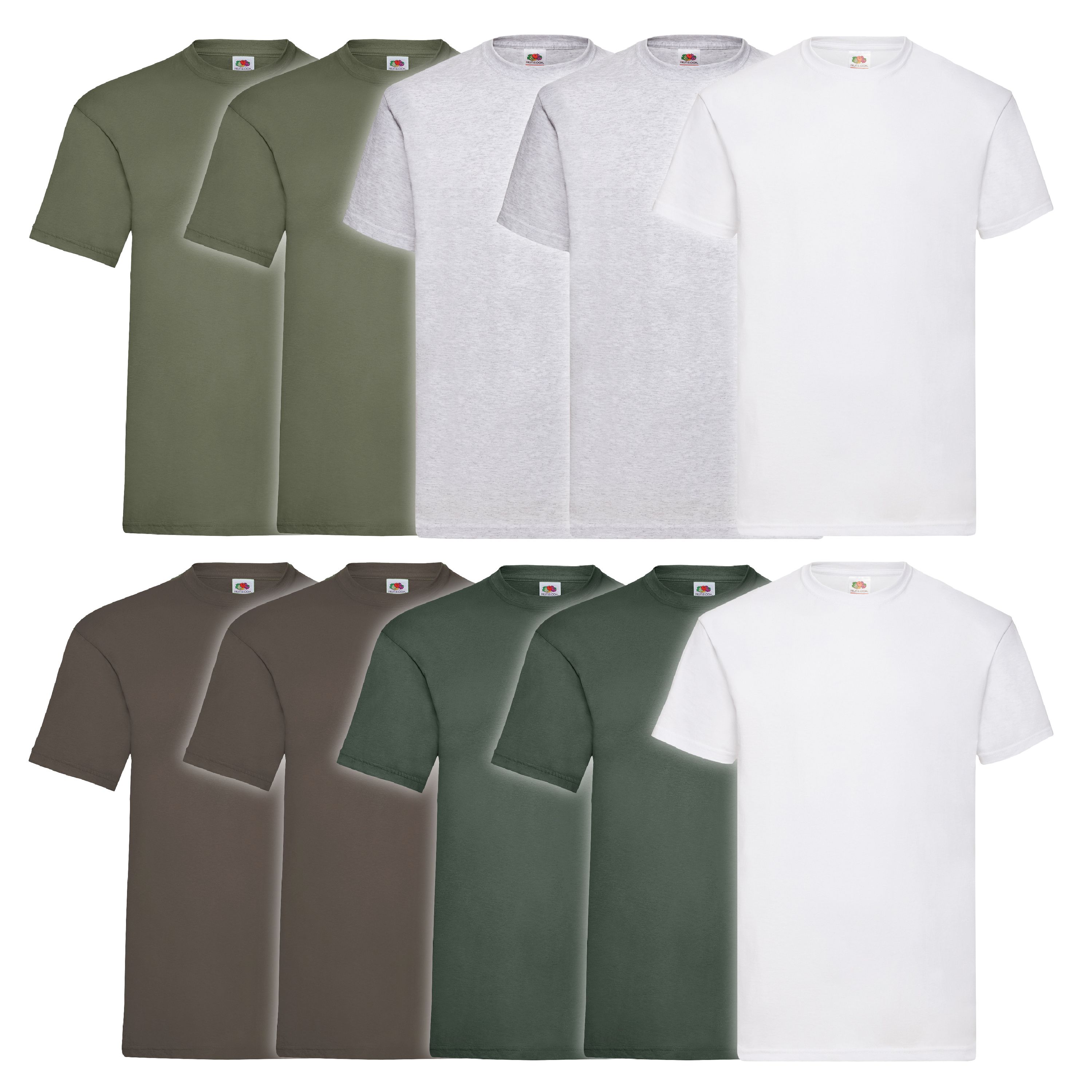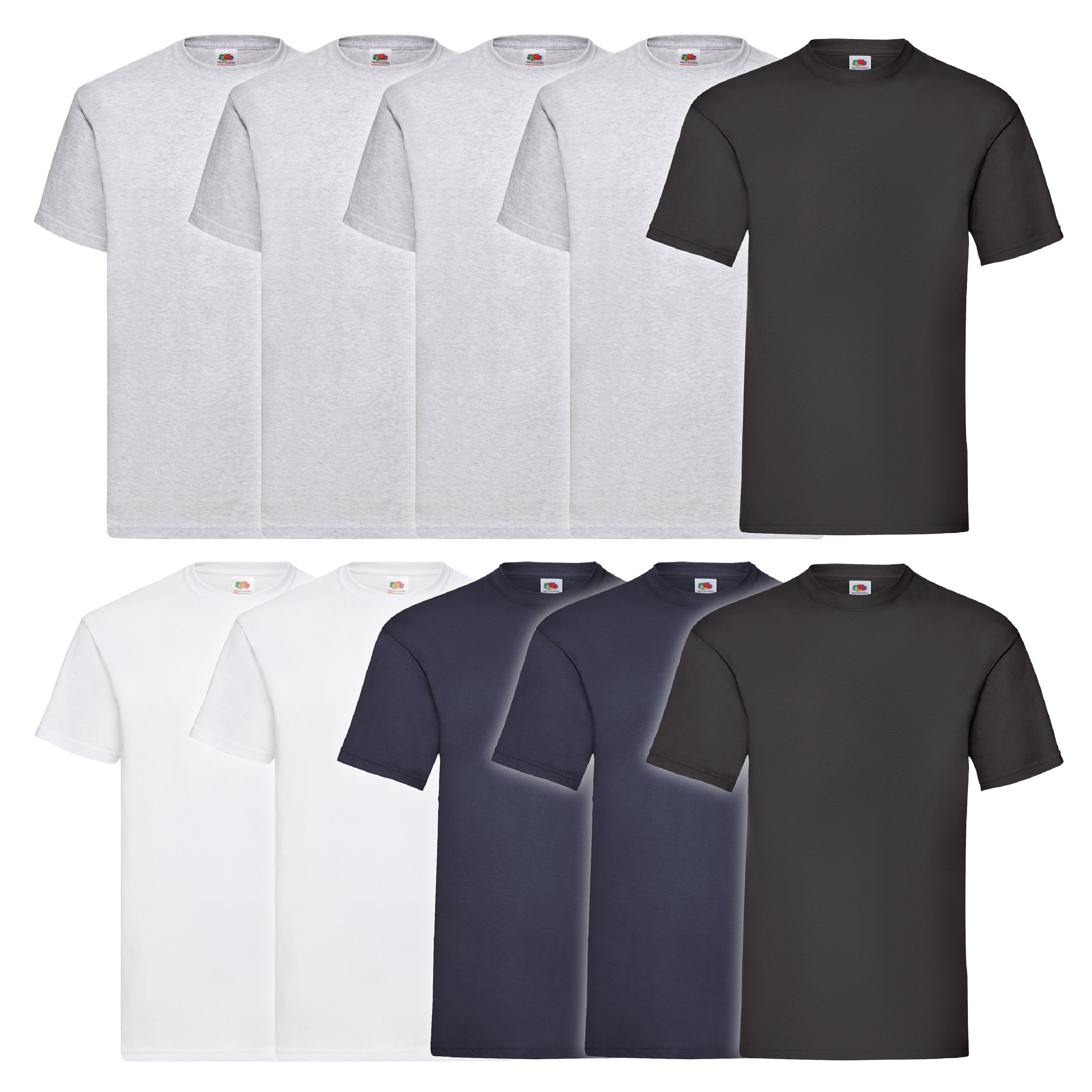 Das perfekte Basic-T-Shirt für jeden Tag! Dieses 10er-Pack von Fruit of the Loom bietet dir unschlagbaren Wert. Aus weicher Baumwolle/Lycra-Mischung mit dehnbarem Rundhals-Ausschnitt für optimalen Tragekomfort. Höhere Maschendichte für bessere Formstabilität und Langlebigkeit. Farbige Shirts wiegen 165g/m², weiße 160g/m² - nicht zu dick, nicht zu dünn. Einfach bei 40°C maschinenwaschbar und bügelfreundlich. Von Größe S bis 5XL erhältlich, in vielen Farben wählbar. Perfekt für Unterhemden, Arbeitskleidung, Sport oder einfach als Allrounder im Schrank. Mit 10 Shirts bist du lange versorgt - praktisch und preiswert!