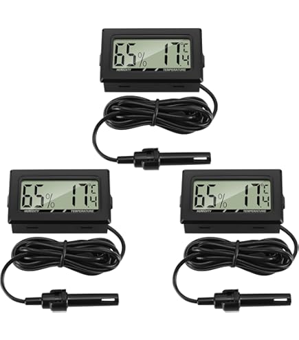 Immer die perfekte Temperatur und Luftfeuchtigkeit im Blick! Dieses praktische 2-in-1 Gerät kombiniert Thermometer und Hygrometer in einem. Mit externer Sonde für maximale Genauigkeit misst es Temperaturen von -50°C bis +70°C und Luftfeuchtigkeit von 10% bis 99%. Das klare LCD-Display zeigt alle Werte gut lesbar an. Perfekt für Kühlschrank, Gefrierschrank, Terrarium, Inkubator oder Zigarrenhumidor. Mit 2 LR44 Batterien betrieben und nur 4,8x2,9x1,6cm klein. So behältst du immer die Kontrolle über das Klima - ob für deine Reptilien, Lebensmittel oder wertvolle Zigarren. Ein unverzichtbares Tool für jeden, der auf präzise Messwerte angewiesen ist!