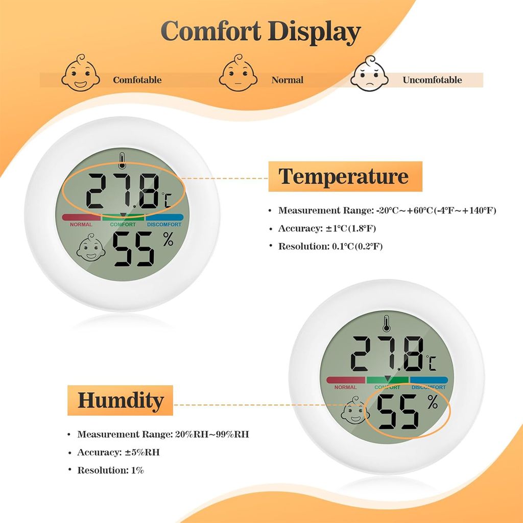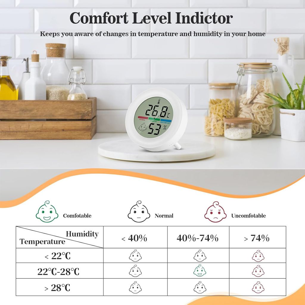 Immer das perfekte Raumklima! Dieses 3er Set digitaler Thermo-Hygrometer zeigt dir Temperatur (-20°C bis 60°C) und Luftfeuchtigkeit (10%-99% RH) genau an. Super praktisch mit Komfort-Anzeige - weißt sofort ob's zu trocken oder feucht ist. Nur 43x42x13mm klein, mit CR2032 Batterie inklusive. Magnetisch, wandmontierbar oder einfach hinstellen. Perfekt für Wohnzimmer, Schlafzimmer, Keller, Gewächshaus - überall wo's aufs Klima ankommt. Einfach batterie rein und los geht's!