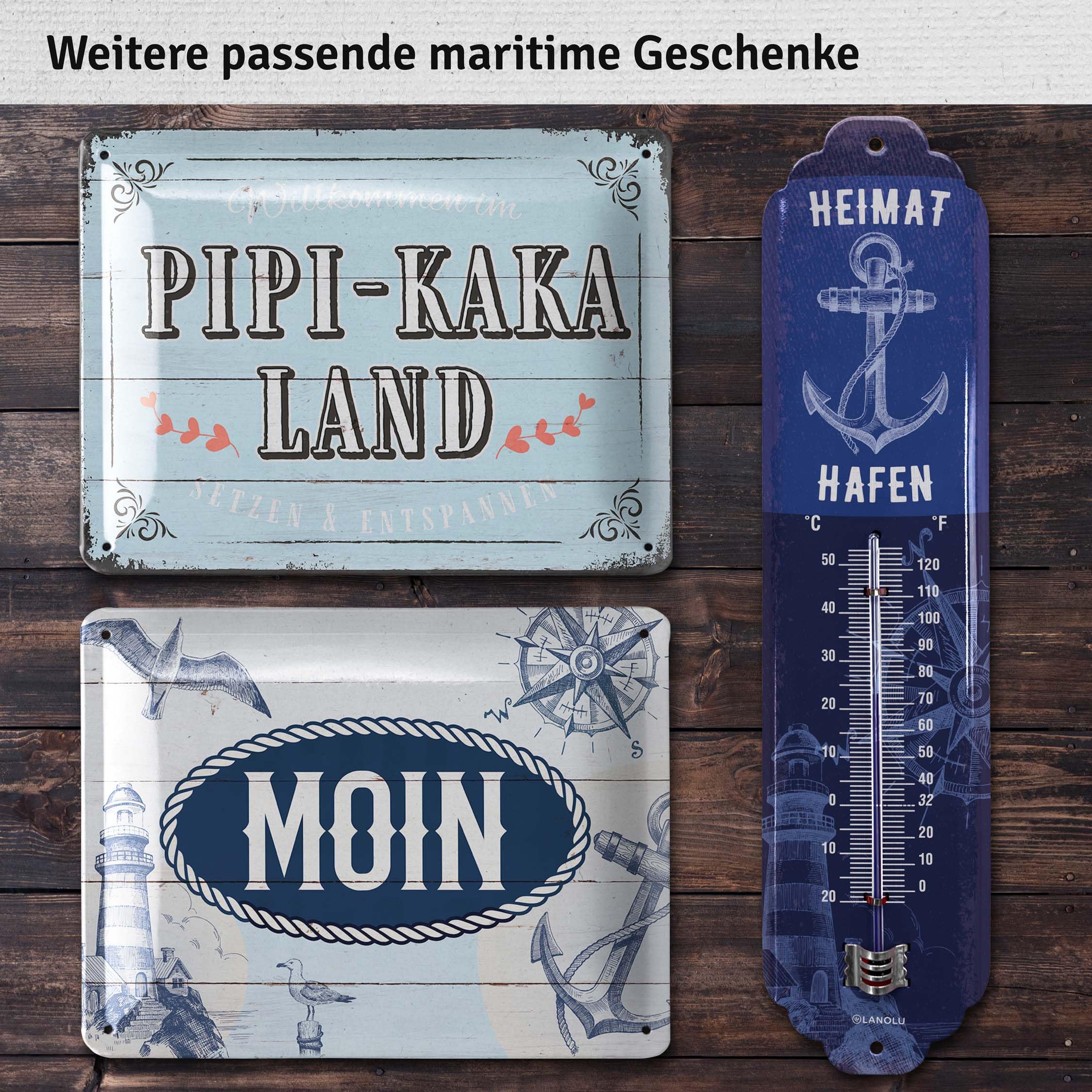 Suchst du noch eine besondere Deko für dein Zuhause? Das LANOLU Heimathafen Thermometer ist nicht nur praktisch, sondern auch ein total stylischer Hingucker! Mit dem Spruch 'Heimathafen - Zu Hause ist, wo das Herz vor Anker geht' trifft es genau ins Schwarze. Das Metallschild hat einen coolen Vintage-Look, ist aber trotzdem wetterfest und hält draußen im Garten genauso gut wie drinnen in der Küche. Maße: 8 x 28 cm. Mit den zwei vorgebohrten Löchern kannst du es easy anbringen - ob mit Schrauben, Nägeln oder Klebehaken. Das Design kommt aus Berlin, und die Qualität spricht für sich: kräftige Farben, stabiles Stahlblech und eine Lackierung, die lange hält. Perfekt als Geschenk zur Einweihung, zum Geburtstag oder einfach so für dich selbst. Über 300.000 Kunden sind schon begeistert - und du?