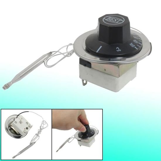 Zuverlässige Temperaturkontrolle für deine Elektrogeräte! Dieser Kapillar-Thermostat regelt Temperaturen zwischen 30 und 110°C und schaltet bei 16A und 250V. Perfekt für Backöfen, Warmwasserbereiter, Heizungen oder andere Haushaltsgeräte. Die Kapillare ist 72cm lang, die Sonde 73mm - damit kannst du flexibel montieren. Einfaches Anschließen mit 2 Anschlüssen. Achtung: Für hohe Präzision besser digitalen Thermostat wählen, aber für die meisten Standardanwendungen absolut ausreichend. Ein solides Teil für deine DIY-Projekte!