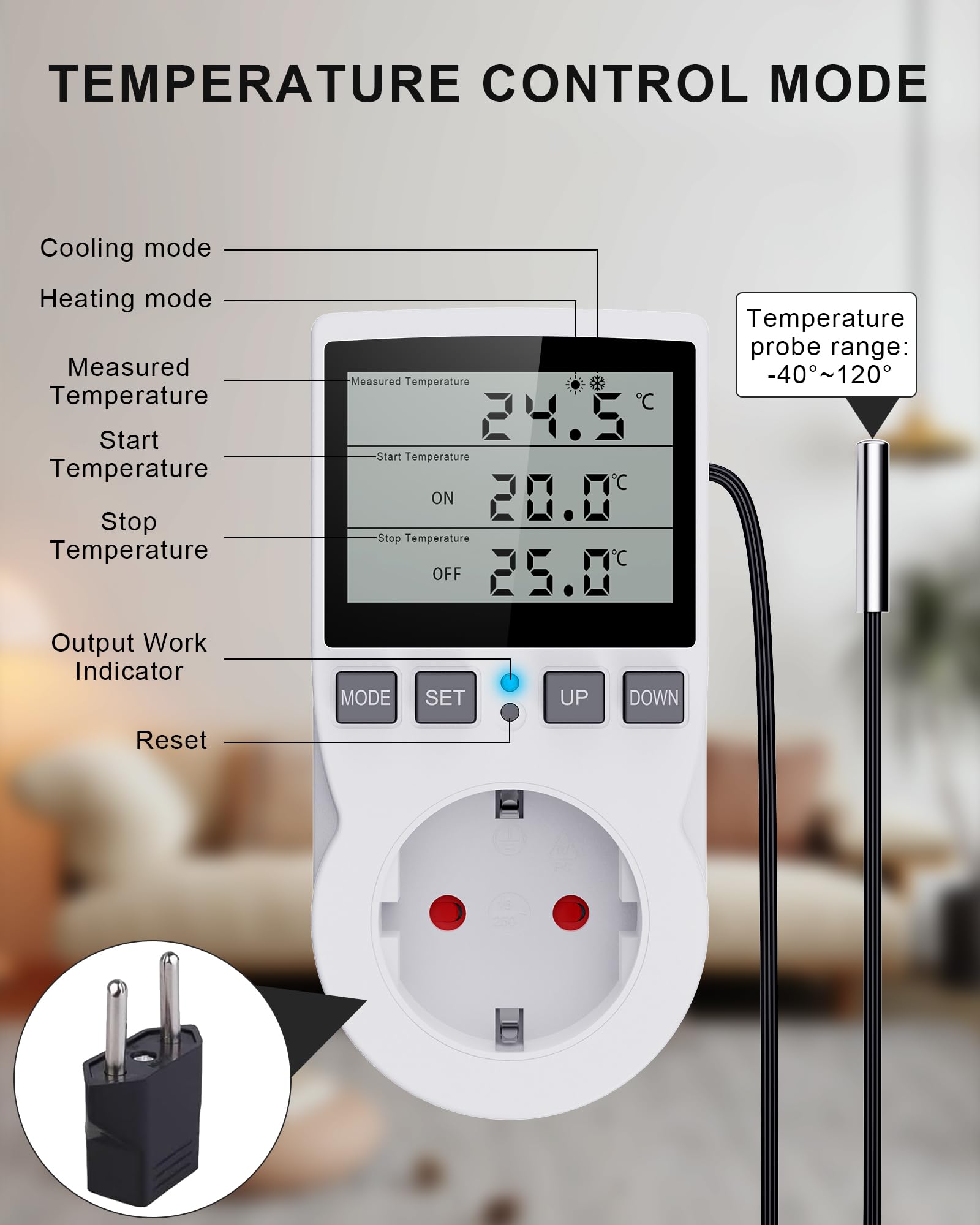 Der mitgelieferte Sensor macht die Messung super genau. Einfach Stecker in die Dose, Sensor platzieren und gewünschte Temperatur einstellen - mehr ist nicht nötig!