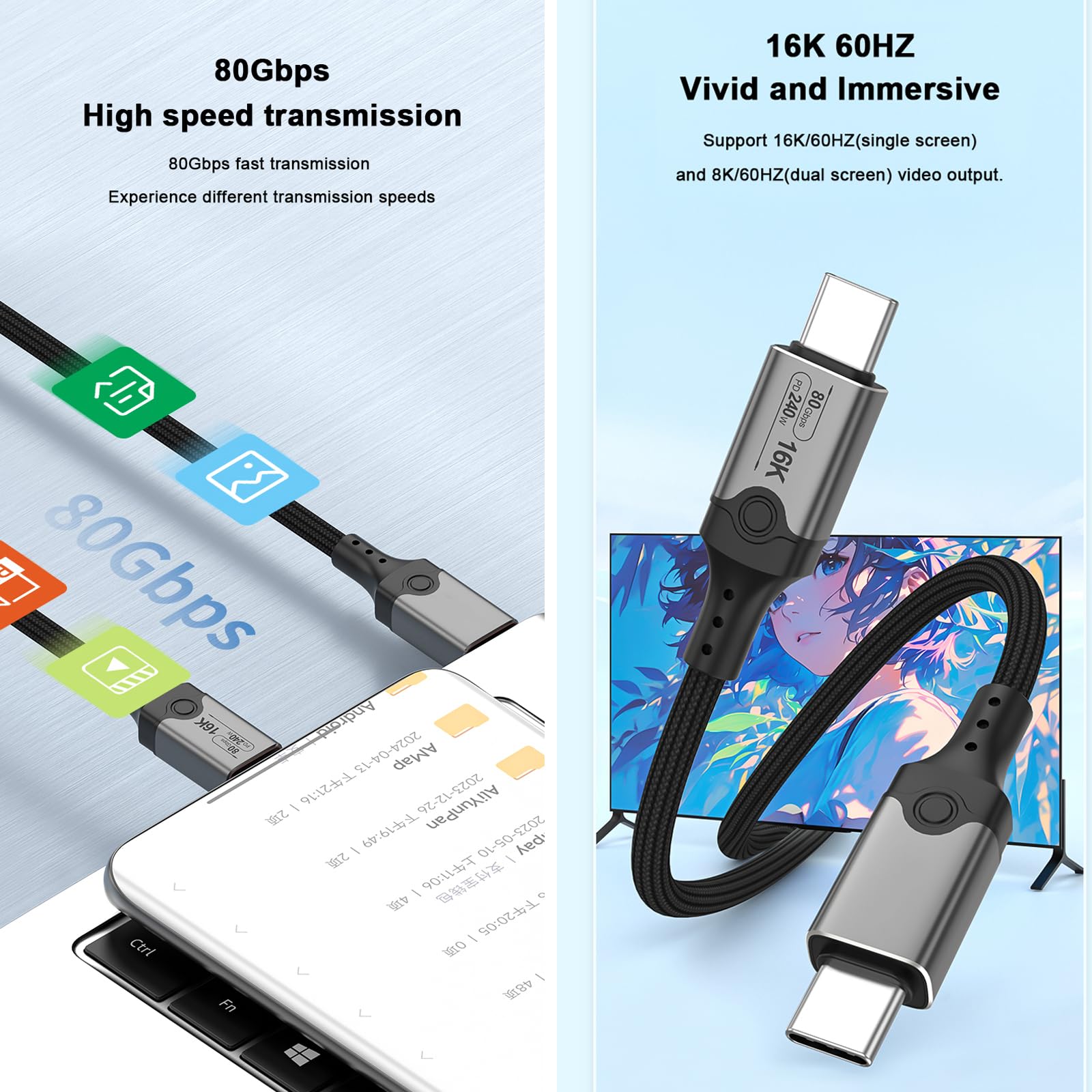 Alter, dieses Thunderbolt 5 Kabel ist ja mal richtig krass! Mit 80Gbit/s Datenrate überträgst du 24 Stunden HD-Videos in ner Minute - einfach irre! Und das bei nur 30cm Länge, perfekt für den Schreibtisch. Es unterstützt satte 240W Schnellladung - da lädt selbst dein High-End Laptop blitzschnell. Display? Klar, bis zu 16K oder dual 8K Monitore - für Grafiker und Video-Editoren ein Traum! Kompatibel mit Thunderbolt 4/3, USB4 und USB-C 3.2/3.1. Funktioniert mit MacBook Pro M3, iPhone 15 Pro, Razer Blade 18 und fast allen anderen USB-C Geräten. Das 6K oder Triple 4K@144Hz unterstützt auch Gaming auf nem ganz neuen Level. ConnBull liefert Qualität mit 18 Monaten Garantie. Wenn du auf der Suche nach dem ultimativen Kabel für Geschwindigkeit, Laden und Display bist - hier ist es! Einfach anschließen und von der krassen Performance überzeugt sein!