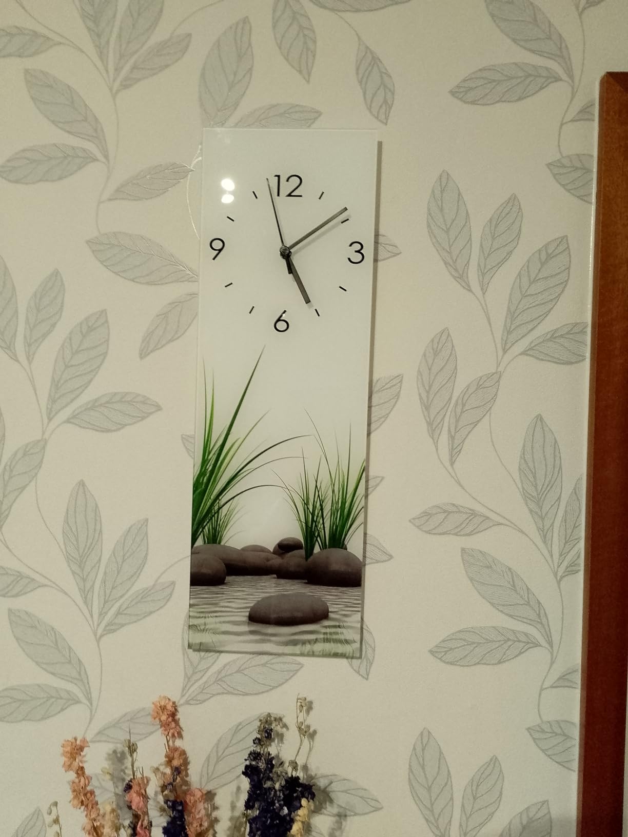 • ARTLAND Wanduhr Ohne Tickgeräusche - 20x60cm Glas Funkuhr Modernes Design