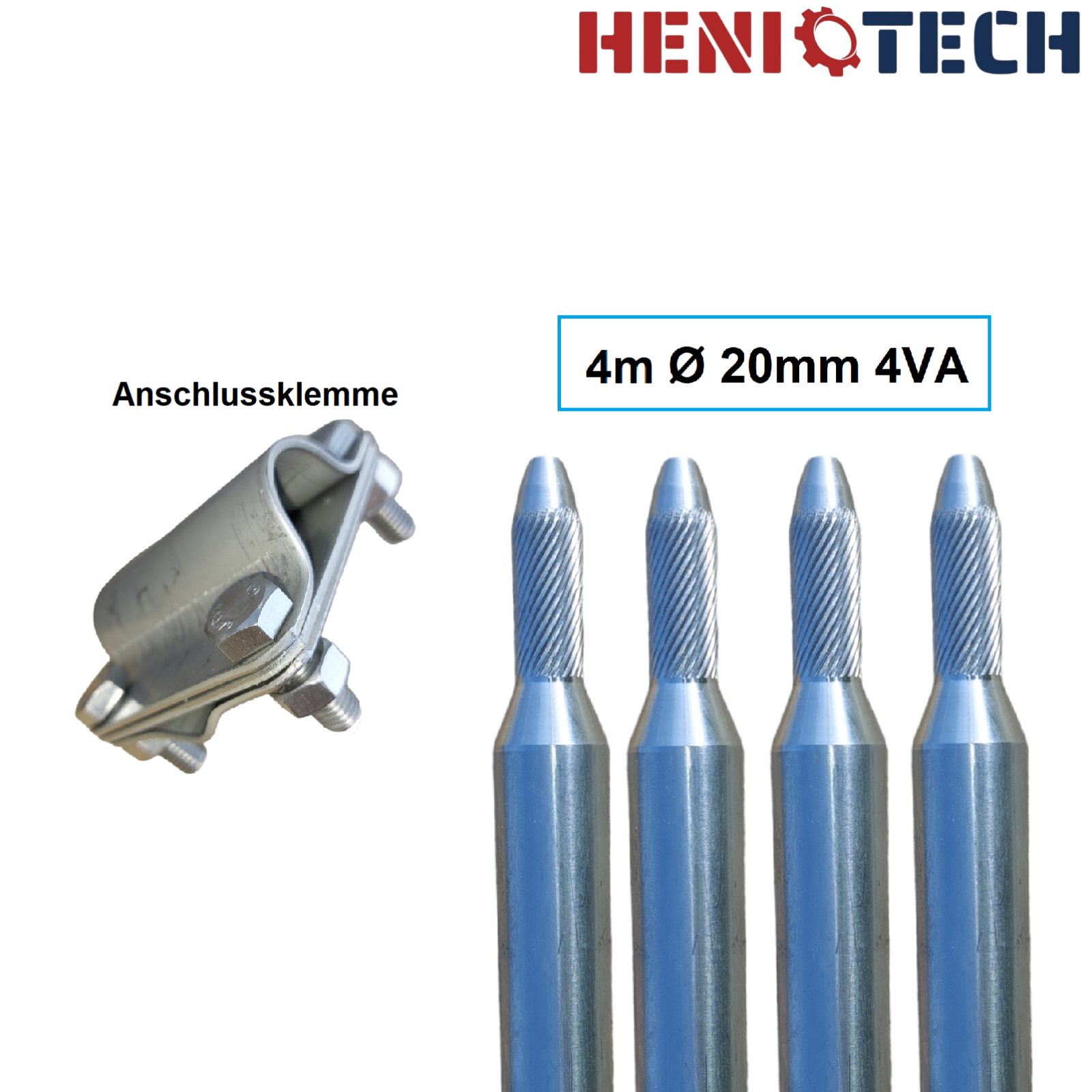 • HENITECH Tiefenerder 20mm Edelstahl V4A - 1m Für Blitzschutz & Erdung